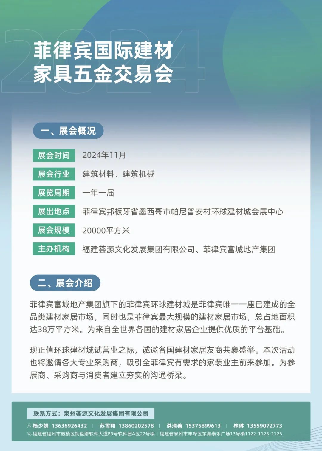 在全球化浪潮不断推进的今天,如何有效链接全球市场,成为家居建材企业发展的重要课题。本届福建建博会承办单位之一的荟源文化发展集团,有着20多年带领企业出海经验,为更好地协助企业拓展海外市场,精心策划出海指南,汇聚多方力量,共同搭建一个服务企业链接全球市场的综合营销服务平台。