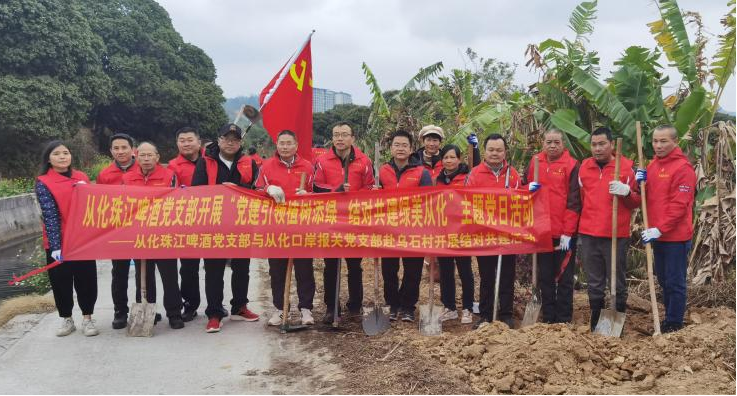 近期,珠啤股份各基层党组织结合主题党日活动,组织党员深入学习习近平生态文明思想和习近平总书记视察广东重要讲话、重要指示精神,并开展义务植树活动,充分发挥党组织战斗堡垒和党员先锋模范作用,让党旗在乡村绿化行动中高高飘扬。
