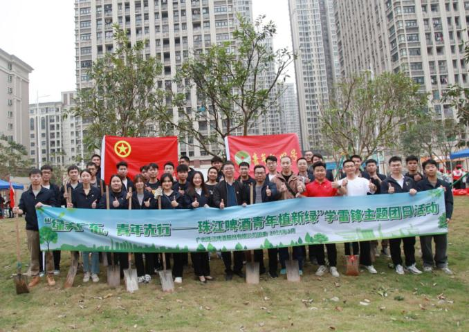 3月15日,珠啤股份团委组织团员青年到花都区花城街前口袋公园开展植树活动。团员青年们齐心协力共同种下20棵“同心树”,并为树木挂上“珠江啤酒青年林”铭牌。