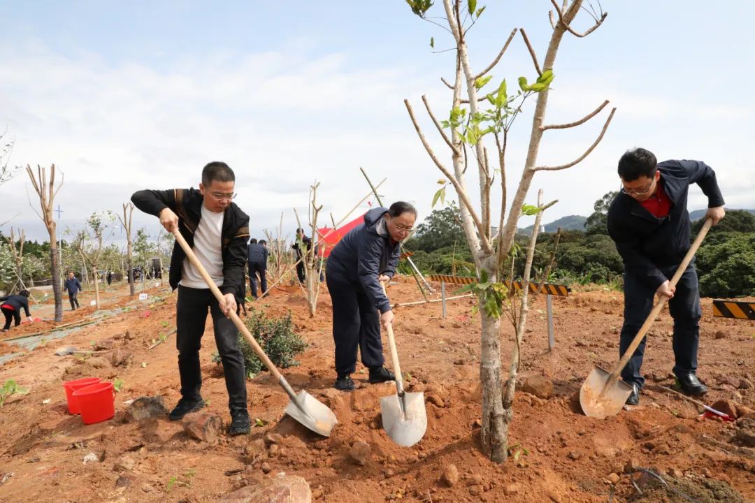 3月19日,珠啤股份到增城区增江街开展“绿美广州·珠江啤酒在行动”暨乡村绿化义务植树活动。党委书记、董事长王志斌,党委副书记、总经理黄文胜等班子成员及高管,工会干部、劳模工匠、职工代表等近50人参加活动。增江街党工委相关领导出席活动。