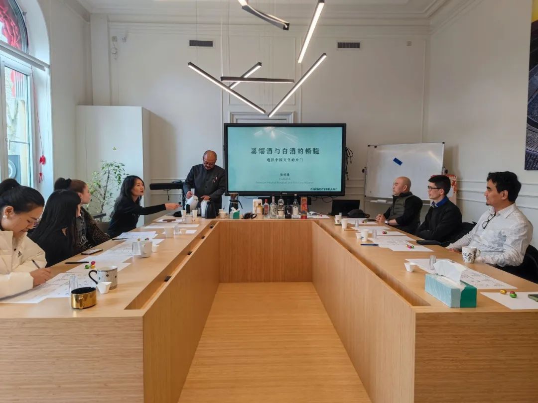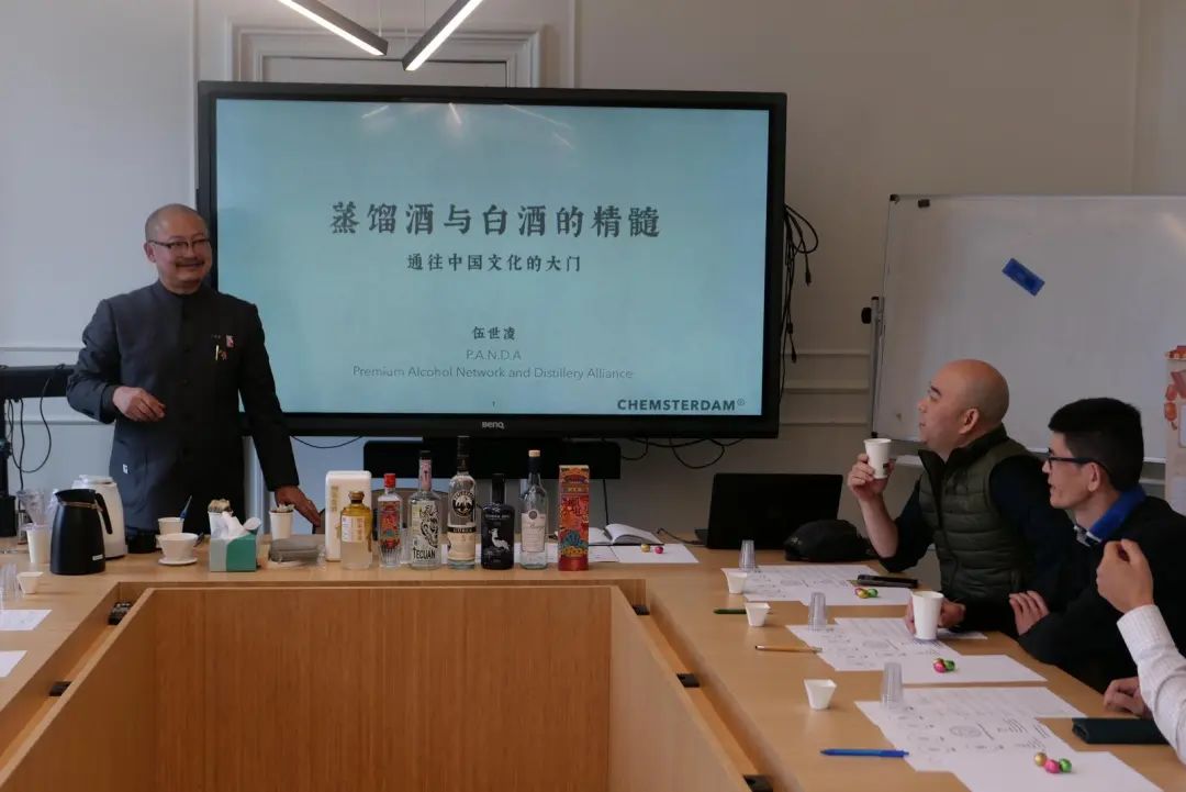 3月22日下午,荷兰南方应用科技大学孔子学院(CIM)邀请荷兰P.A.N.D.A B.V.创始人、中国国家一级白酒品酒师伍世凌先生为孔院全体老师讲授《蒸馏酒与白酒的精髓——通往中国文化的大门》主题讲座。活动邀请了荷兰林堡省华侨总会李斌会长、狄海副会长、姚建高副会长参加。