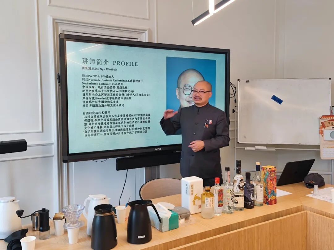 随后,伍先生带领大家踏上了一场关于白酒文化的探索之旅。他深入浅出地介绍了白酒的起源、发酵与蒸馏的工艺技艺及其在中国文化中的重要地位。