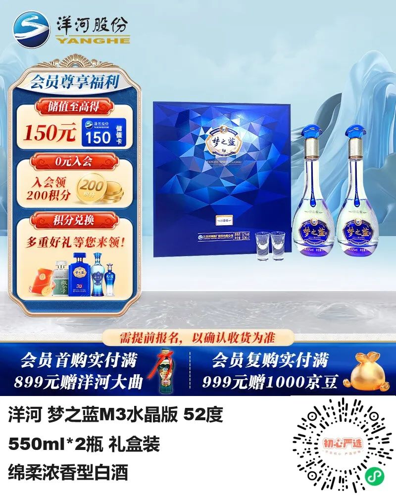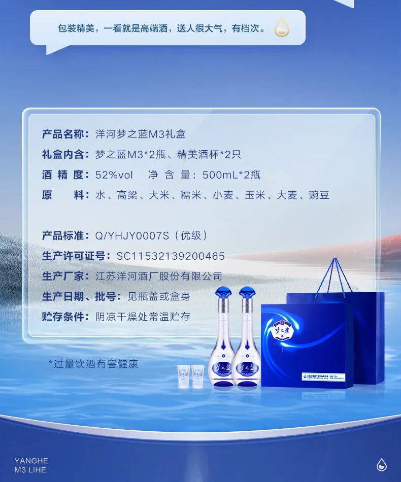 【洋河白酒】洋河梦之蓝M3 52度 500ml*2瓶 礼盒装 绵柔浓香型白酒