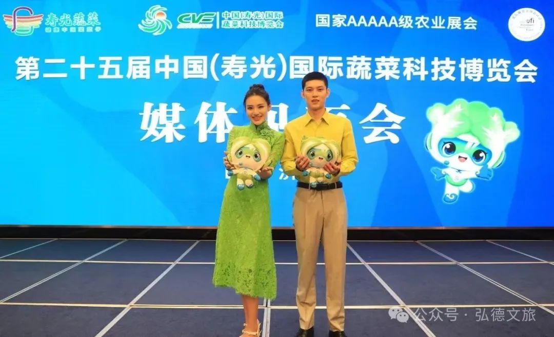 会上,身着礼仪服装、青春靓丽的形象大使携第二十五届菜博会吉祥物“菜小博”精彩亮相。“菜小博”以大白菜与科技机器人的形象相结合,紧扣“绿色·科技·未来”的主题,充分展示了寿光特色和时代气息。