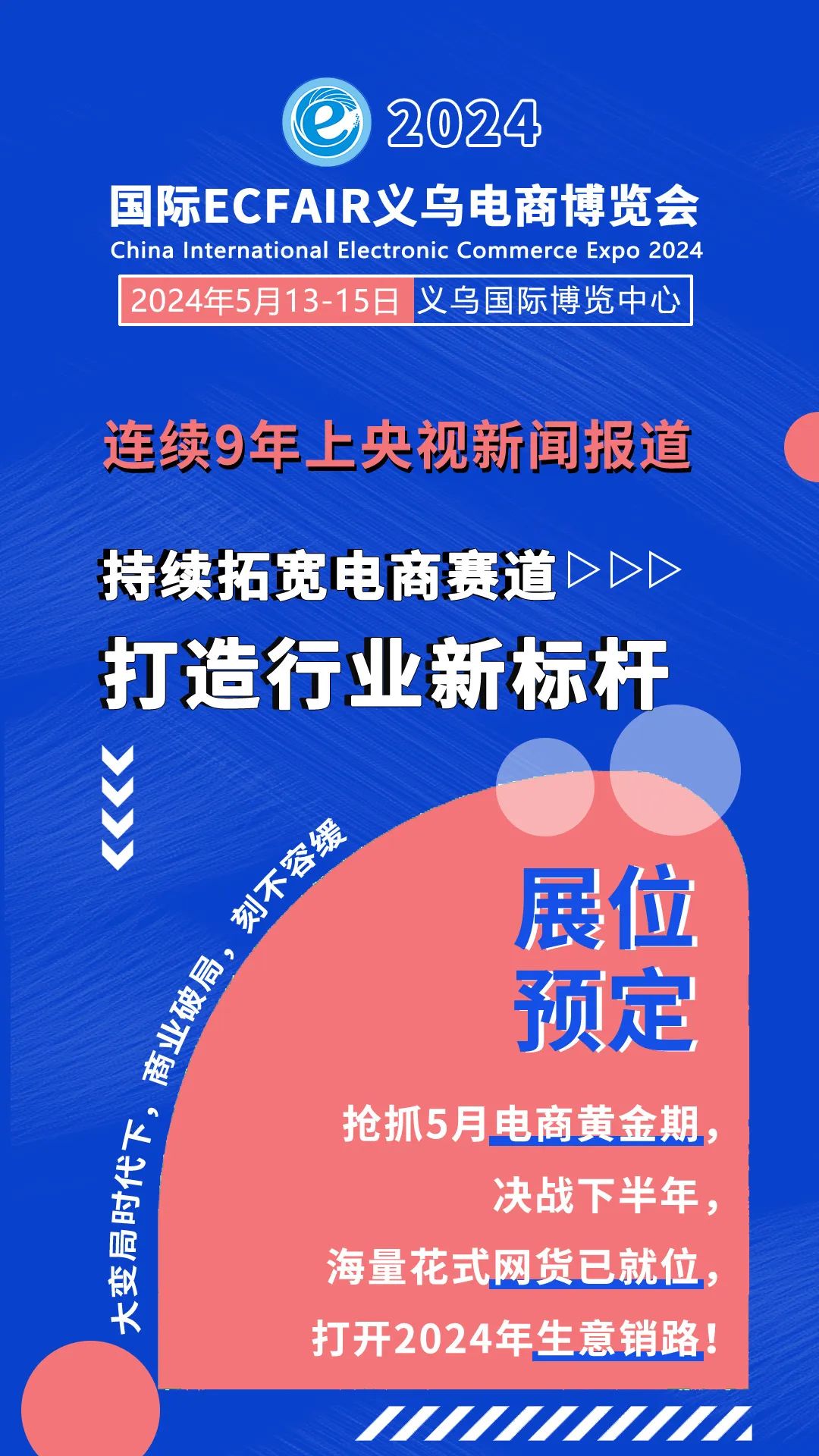 不忘初心,砥砺奋进,感谢各界的充分认可及肯定,今日的殊荣将是明日的鞭笞,2024义乌电商博览会将继续搭建展会平台,打造高质量的电商展会,为电商行业的发展而努力!与此同时,诚邀全球电商人5月13-15日莅临现场,共掘电商可持续发展新路径!