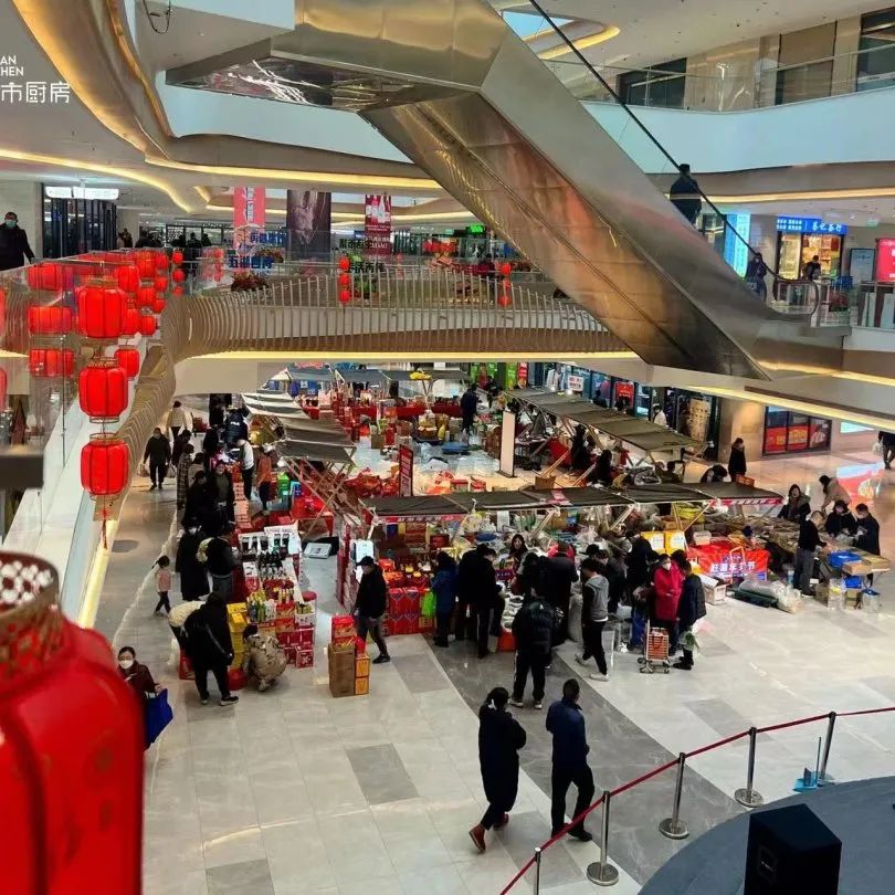 1月6日-20日,城市厨房赶潮年货节火热进行,人气1000W+媒体曝光。酒水海鲜、干货炒货、年货礼盒活动应有尽有,“80团100”消费满额大抽奖实惠霸屏,满足消费者的心愿购物车。与此同时,通过现场书法大师现场作字赠福、抽奖赠礼品等活动,营造浓厚过年氛围。