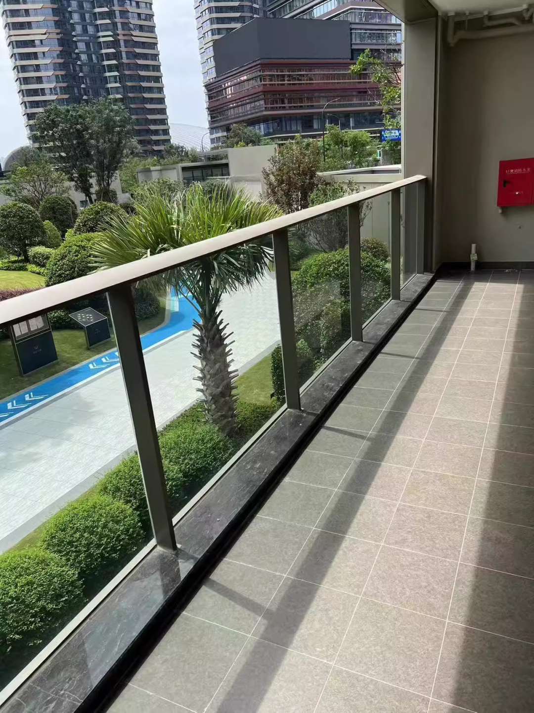 精装修全景落地窗设计、小区自带双泳池