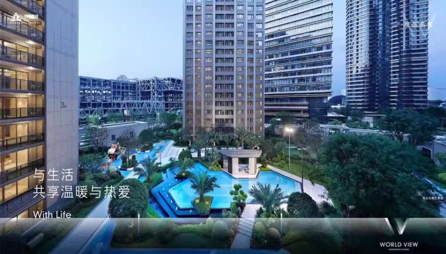 小区南面对望奥体博览城包括了杭州国际博览中心、杭州奥体中心、杭州之门等,