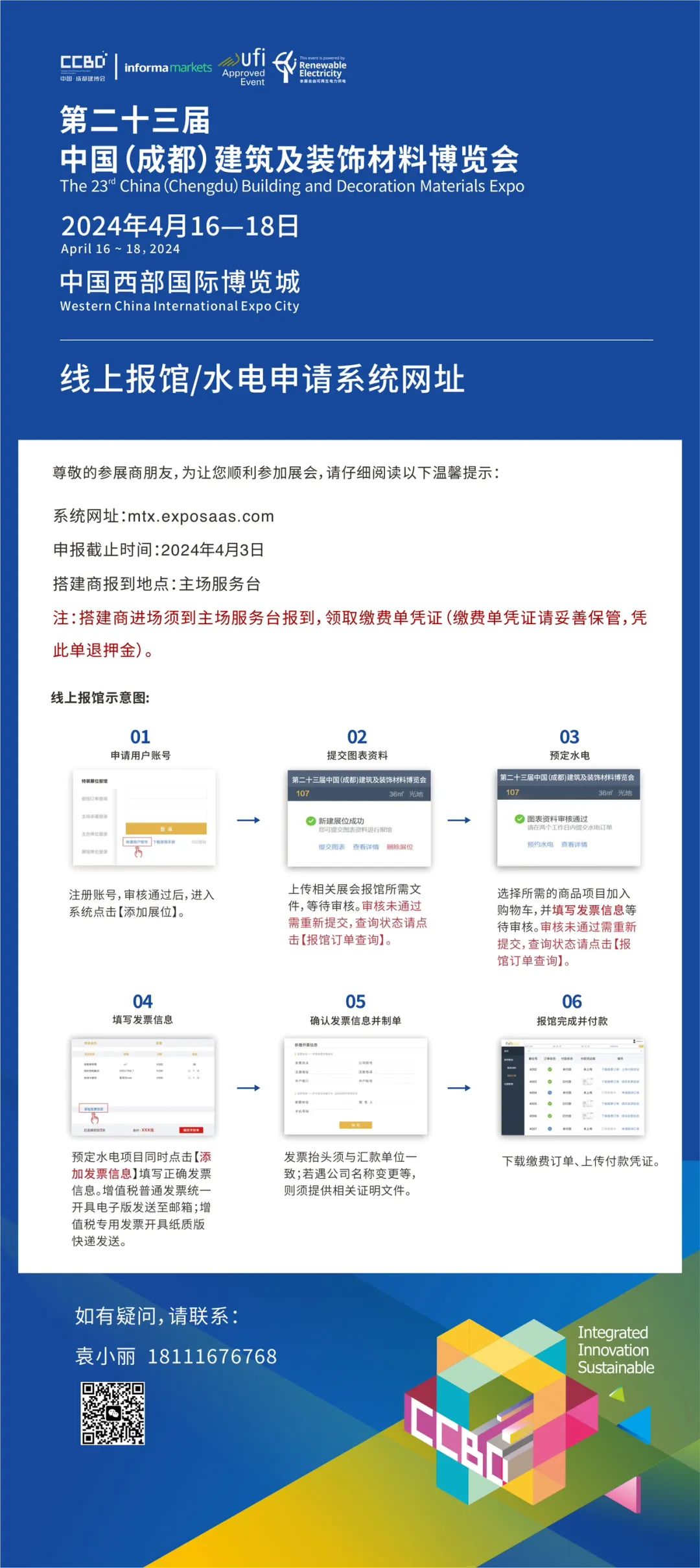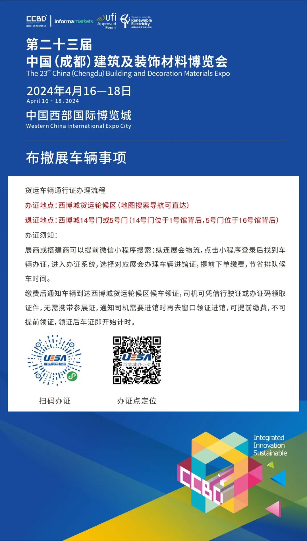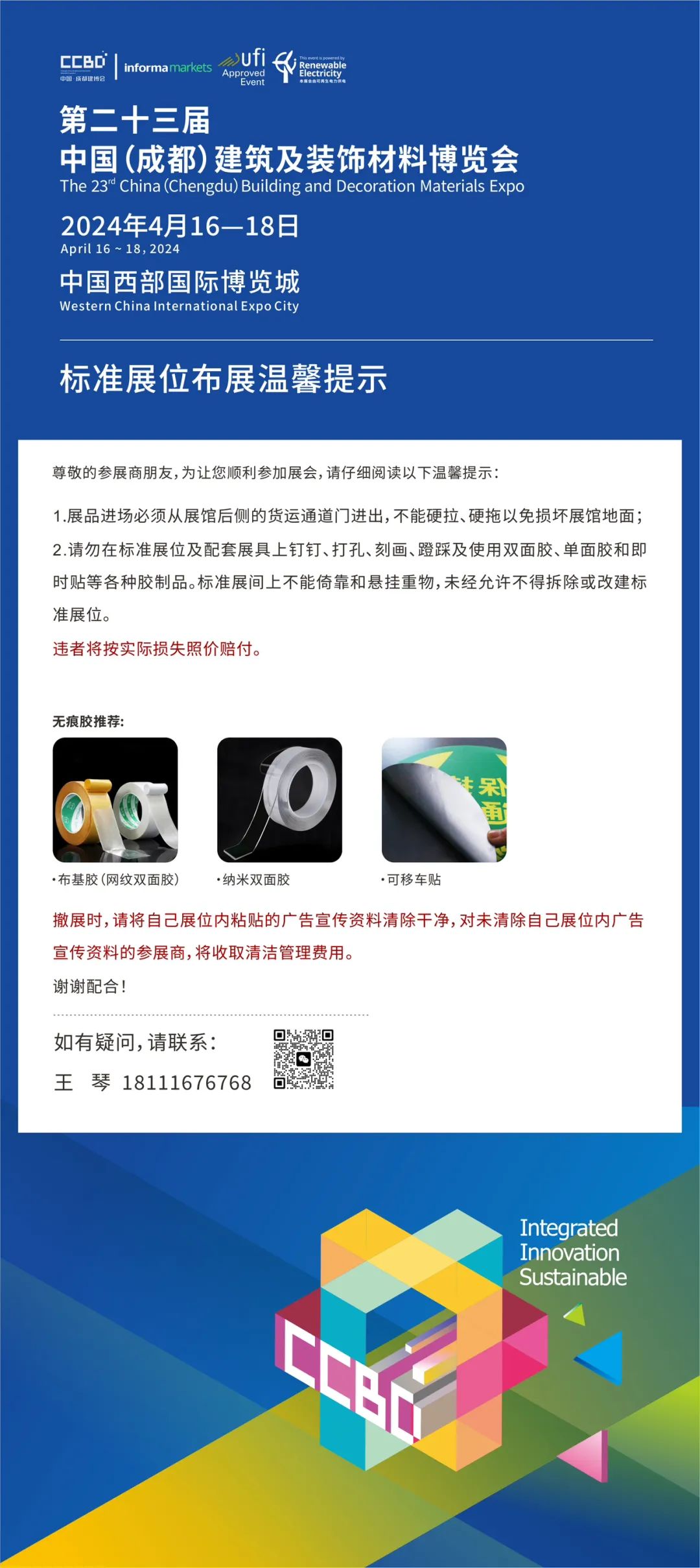 第二十三届中国(成都)建筑及装饰材料博览会(简称:2024CCBD中国成都建博会),将于2024年4月16—18日在中国西部国际博览城召开。本次展会展览面积160000㎡,预计2000+参展企业,50000+款新品,180000+人次专业观众,50+场论坛活动/新品发布会。云集千余厂家、数万行业新品,是中西部地区举办规模最大、展品最全、新品最多的大家居建装行业旗舰展。
