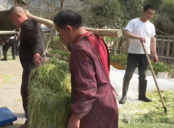 收购的芽菜已经全部入池,等待下一步加工。此时距离美味芽菜端上我们的餐桌至少还需要半年的腌渍和十余道加工工序~