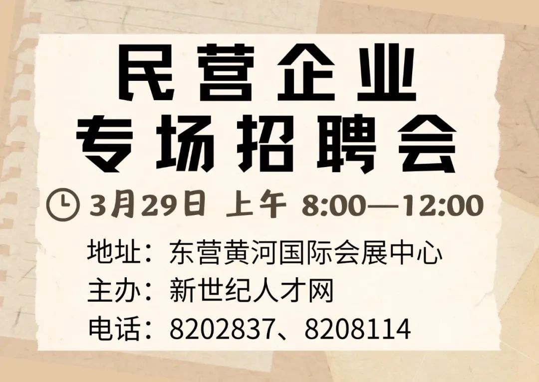 【黄河国际会展中心】招聘会预告丨民营企业专场招聘会将于明日(3月29日)在东营黄河国际会展中心举办!