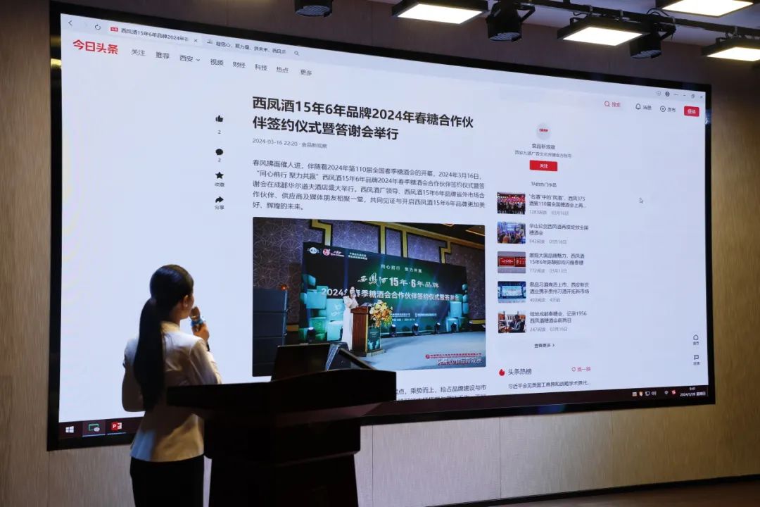 本次大讲堂还回顾了2024年春季糖酒会相关媒体精彩报道。2024年春季糖酒会期间,西凤酒15年6年品牌设立独立的展位,以CCTV大国品牌的形象亮相蓉城,“不销当年成品酒”用品质致敬消费者,品质匠心的传播在糖酒会上引起强烈共鸣,取得了丰硕的成果。
