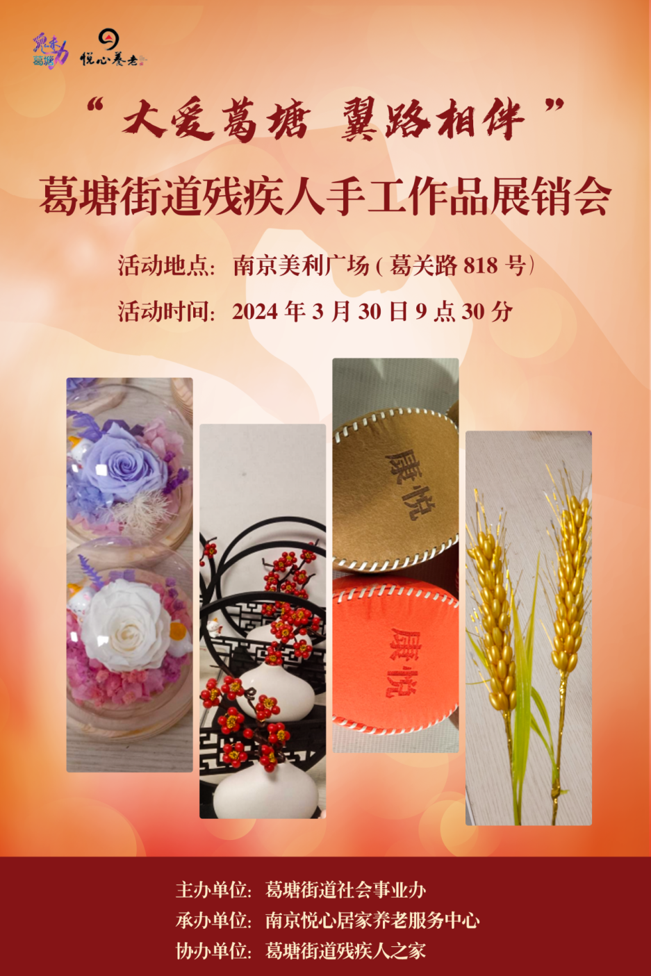 本次展销会集结了辖区内残友们精心制作的各种手工作品,每一件都蕴含着他们的独特创意和无限情感,表达他们对美好生活的向往和追求。