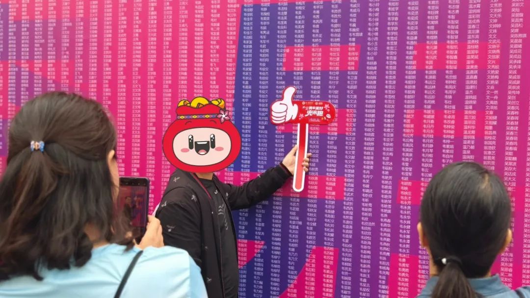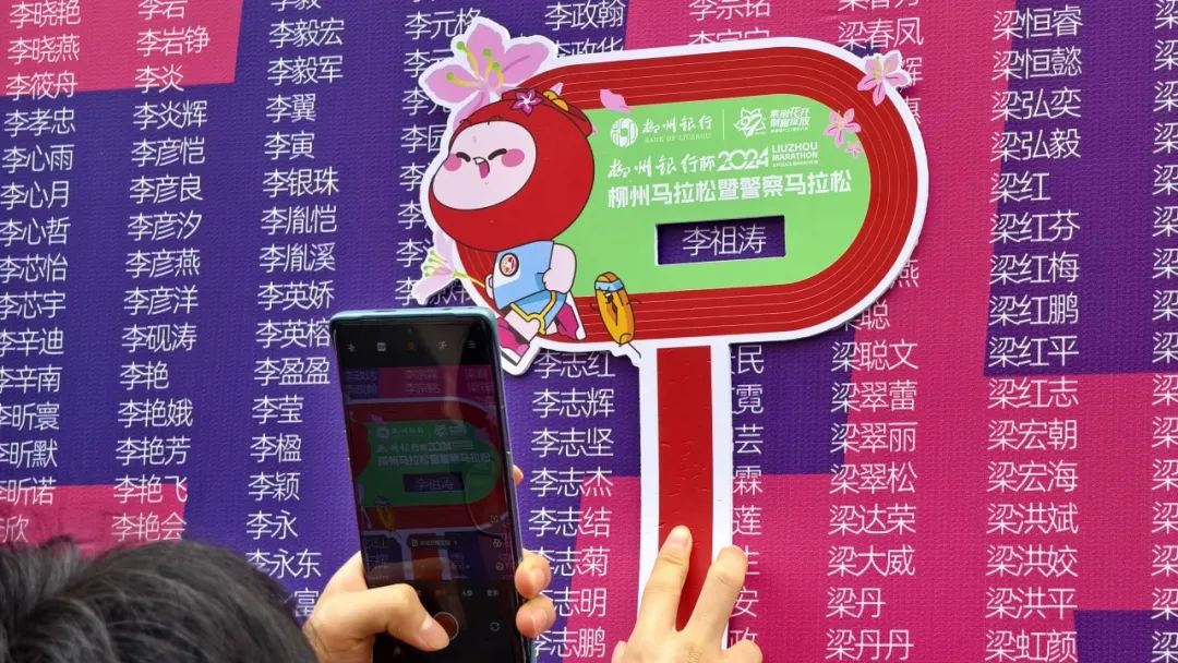 博览会现场还设置了选手姓名墙,柳州银行贴心地准备了专门用于打卡的手举牌,选手们手持手举牌,在自己的名字前合影,现场欢声不断。