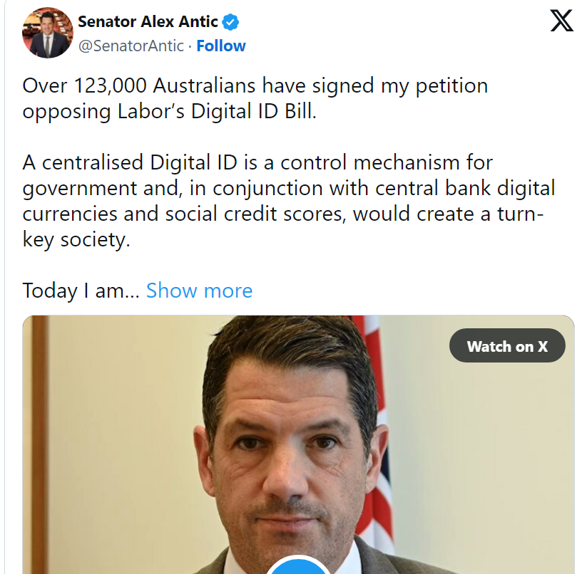 联邦自由党参议员安蒂克(Alex Antic)在参议院辩论前收集了12.3万个签名反对该法案。3月25日,他在X发帖称,集中式数字身份是政府的一种控制机制。他说:“目前,这项法案的提出似乎仅仅是为了你的安全,它将建立一个友好的身份识别系统,以便你可以与政府和企业互动。”“但我并不买账。这是迈向数字化未来的第一步,也是下一步。这可以很容易地与中央银行数字货币或社会信用评分结合起来,但在此之前,你需要数字身份证。”经过参议院的调查和短暂磋商,数字身份法案于2023年11月30日首次提交参议院。联邦金融部长加拉格尔的办公室向媒体提供了该法案的相关修正案细节,其中包括允许企业在两年内注册,以及使数字身份证系统成为自愿性的规定。加拉格尔表示,政府还将支持确认自愿使用数字身份的修正案,并确保验证身份以获取服务的替代方式易于使用,且不会对那些不想要数字身份的人造成不利。世界贸易组织专家小组裁定,澳大利亚对自中国进口的铁道轮毂、风塔、不锈钢水槽产品采取的部分反倾销和反补贴措施不符合其规则。裁决称,澳大利亚对这三种中国进口产品的倾销和补贴调查存在缺陷。