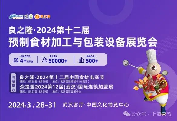 3月28-31日,良之隆·2024第十二届预制食材加工与包装设备展览会将在武汉文化博览中心举行,上海来贺自动化设备有限公司展位号:P1-B65,将带来多款产品,届时欢迎新老客户朋友莅临展会现场参观交流。