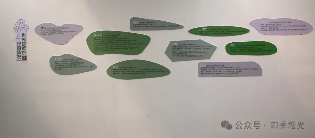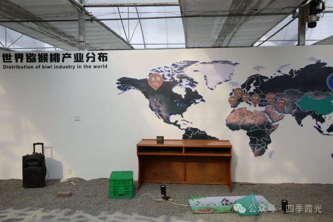 一进门,我们看到的是世界猕猴桃的地域分布图。看得出来,中国的猕猴桃种植占据了全世界的51%。