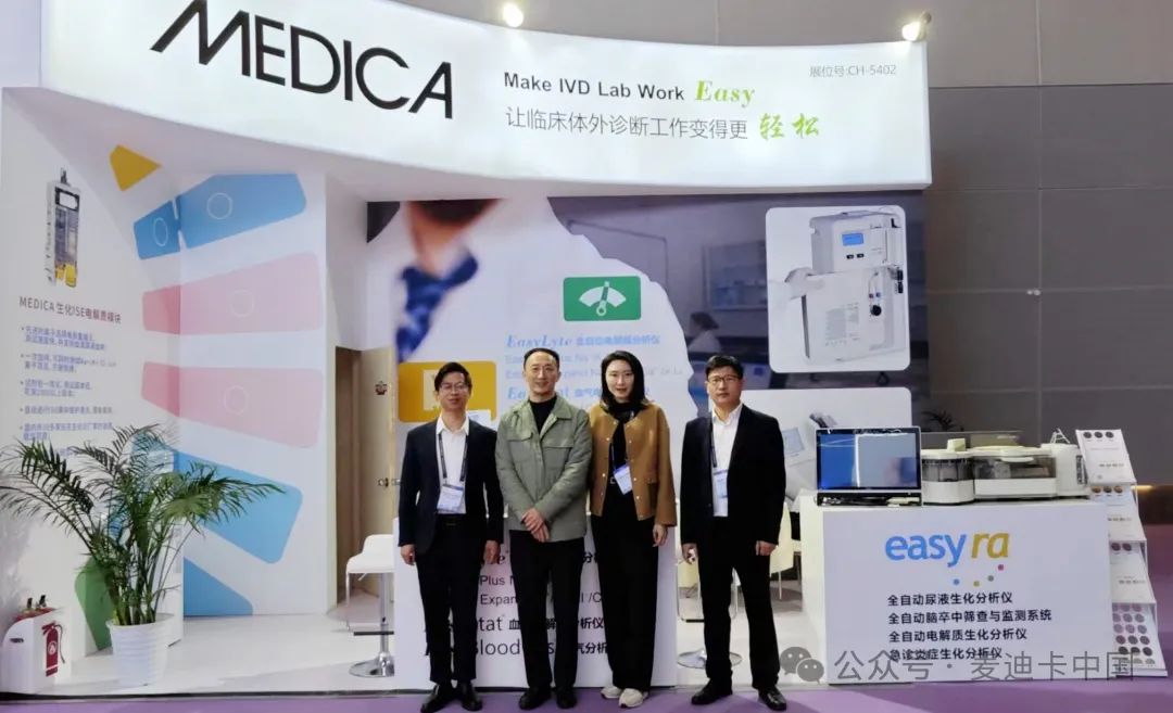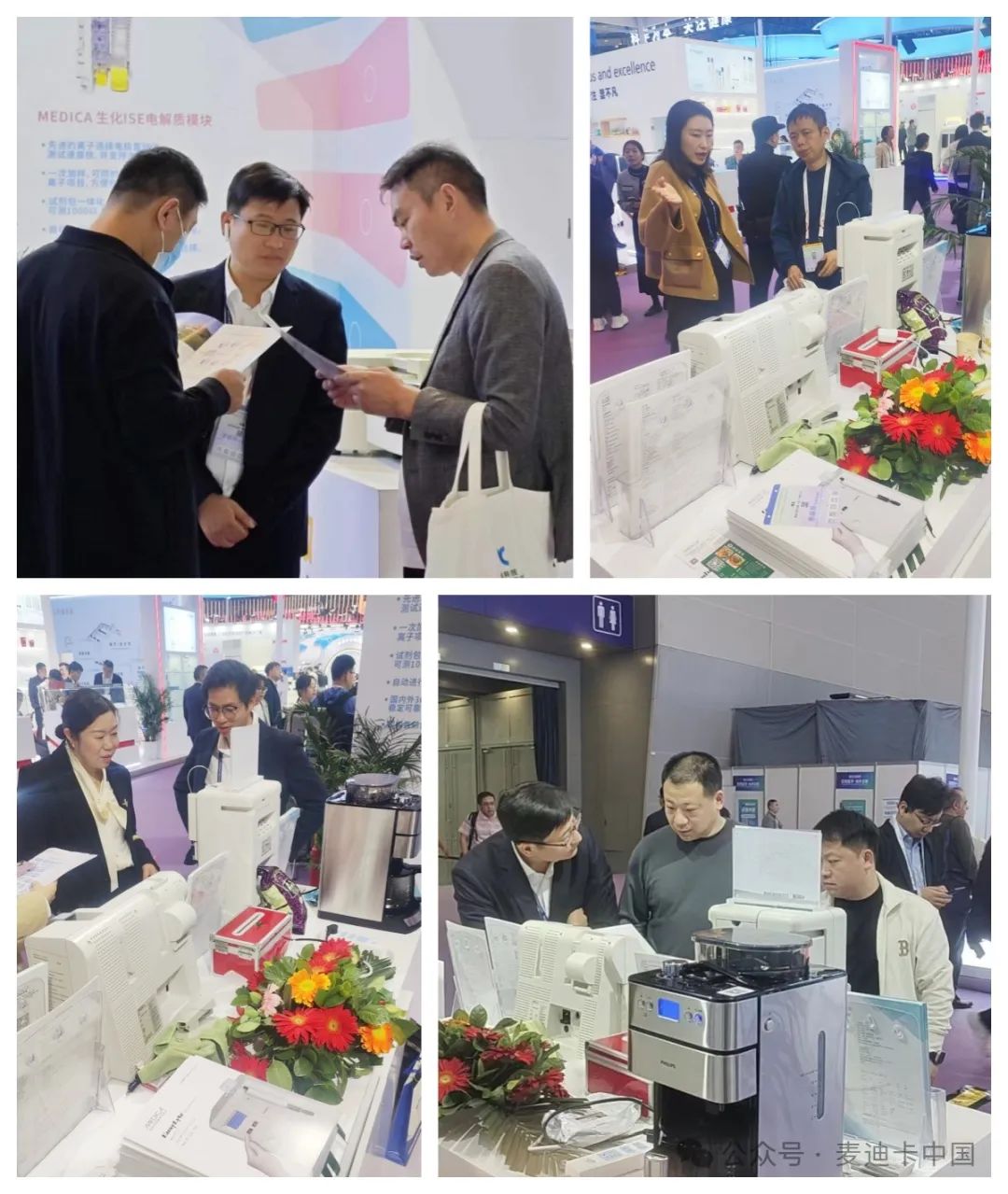 展会期间,前来麦迪卡中国展位观摩、洽谈的客户络绎不绝。现场展示了MEDICA仪器包括EasyLyte 全自动电解质分析仪、EasyStat 血气电解质分析仪、EasyBloodGas 血气分析仪及Easy Ra 全自动尿液生化分析仪,工作人员热情地为每一位客户讲解产品,解答疑惑,用行动诠释了Medica产品不一样的体验。