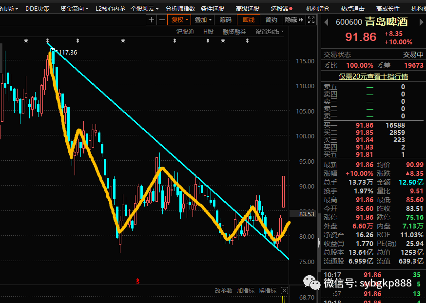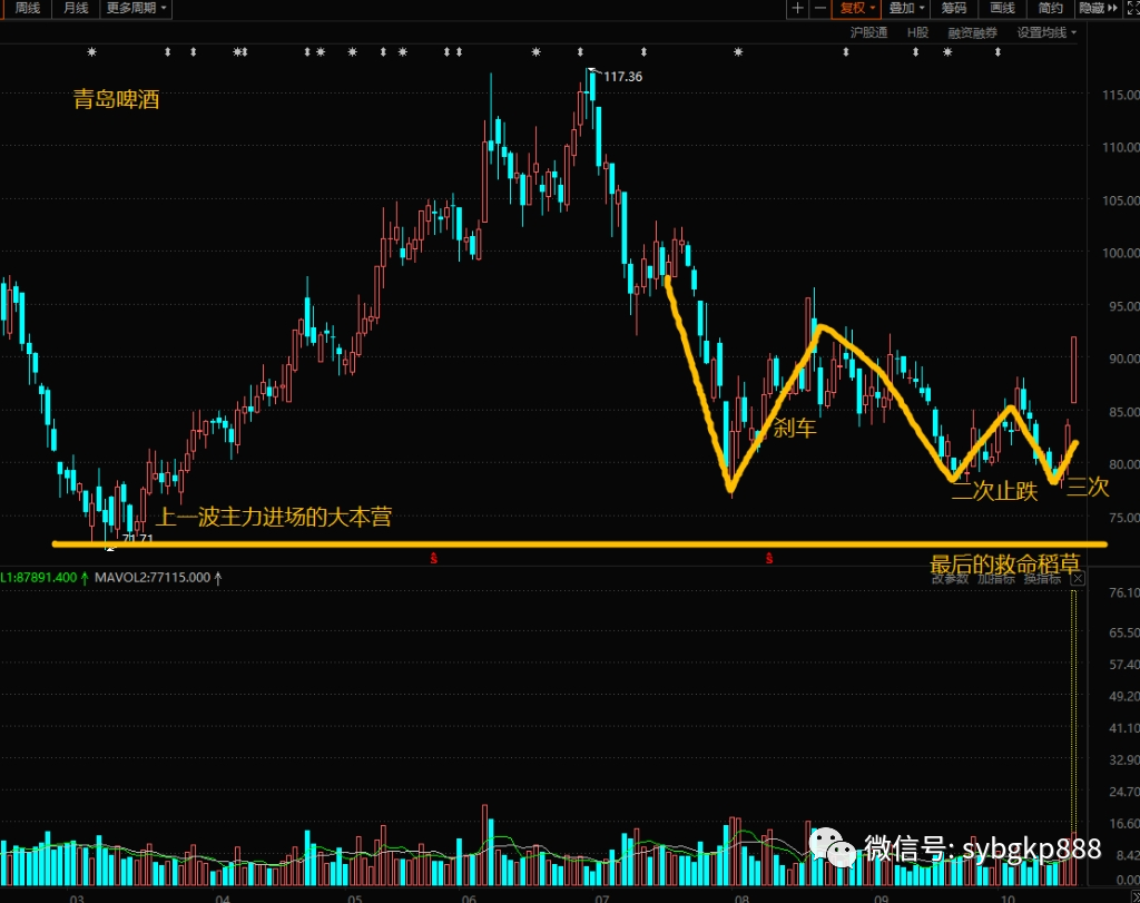 青啤日线在股价回落到周线的支撑之前就已经开始了多轮次的踩刹车,没有放任股价跌到多方上一轮进场的大本营,日线级别多次止跌末端上劲儿,这个可以看出来主力是早做准备,有意护盘。