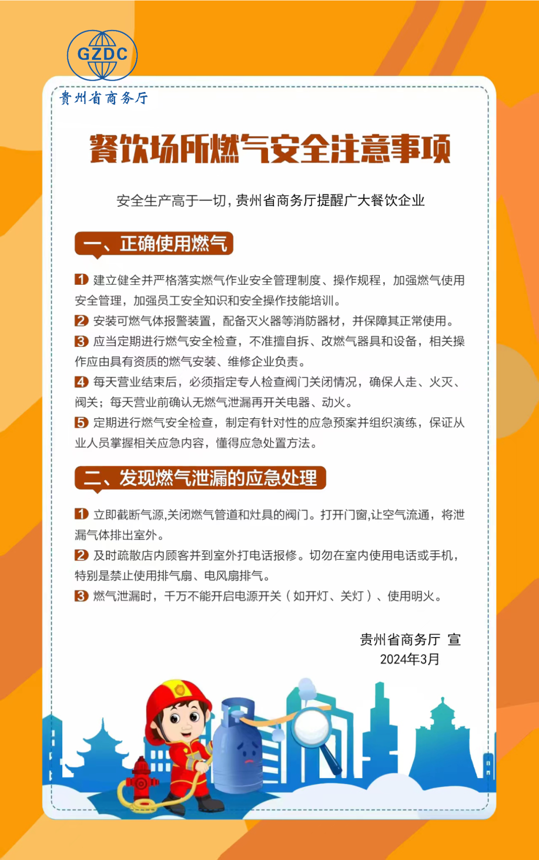 为进一步提高行业安全生产水平,3月28日,贵州省商务厅发出《省商务厅关于切实加强餐饮行业燃气使用安全管理的通知》,加强全省餐饮行业燃气使用安全管理。