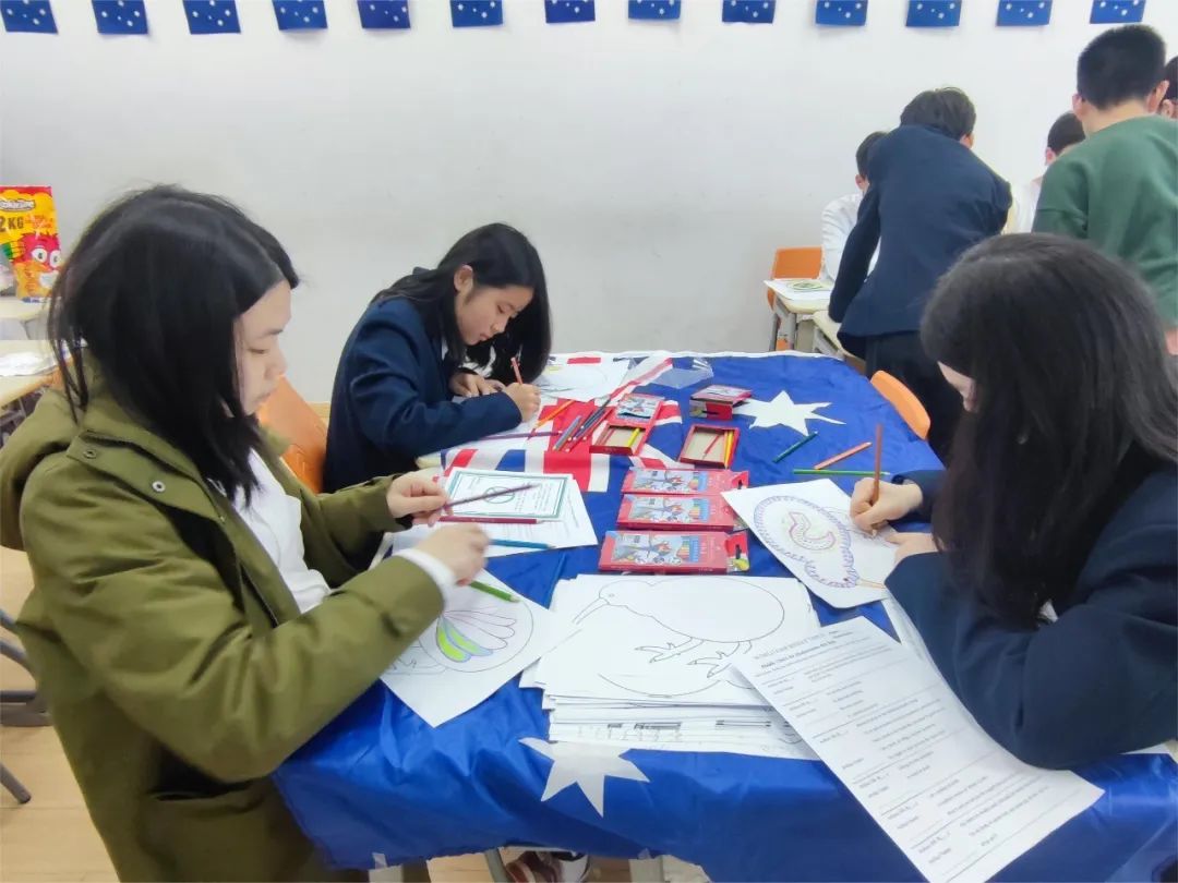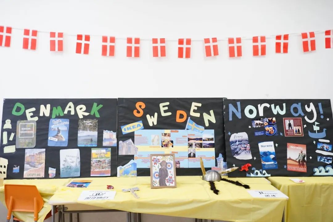 Over the past month, the students, organized by their administrative classes, have made thorough preparations for the World Fair. During this time, we have seen students ardently decorating classrooms; some even making exquisite specialty foods for this event and are prepared to share them on the World Fair. In geography class, students used the internet to survey folk cultural artifacts from different countries and demonstrated their class's research and creativity through the creation of distinctive cultural relics. From painting a Mona Lisa with a beard to making a Viking iron hat, through hands-on practice, these students have gained deep understandings of the origin and development of cultures in various countries. In the classroom, we can also find carefully crafted cultural games and informational posters made by students.