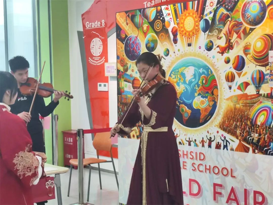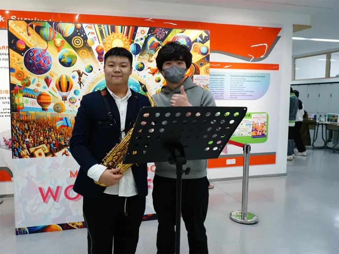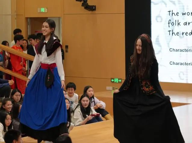 On the open space outside the World Fair posters on the fourth floor, there will also be spectacular performances prepared by students, including saxophone, violin, and pipa performances. In addition, the fashion show will be held on the basement floor is also a major highlight of the eighth grade World Fair. Two students from each class will wear clothing inspired by traditional and local elements from various countries and showcase diverse styles on the podium.