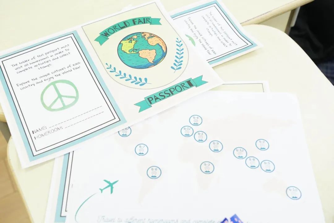 每个班级各代表三个国家,同学们将为这些国家打造与众不同的工艺品,并以此为基础装饰教室、设计活动。参与活动的同学可以用现金兑换代金券,并在活动中使用,参与班级开展的游戏或是购买富含文化元素的工艺品和美食。同学们在参加不同活动后还能收集“通行证”上的章,记录自己的体验历程。