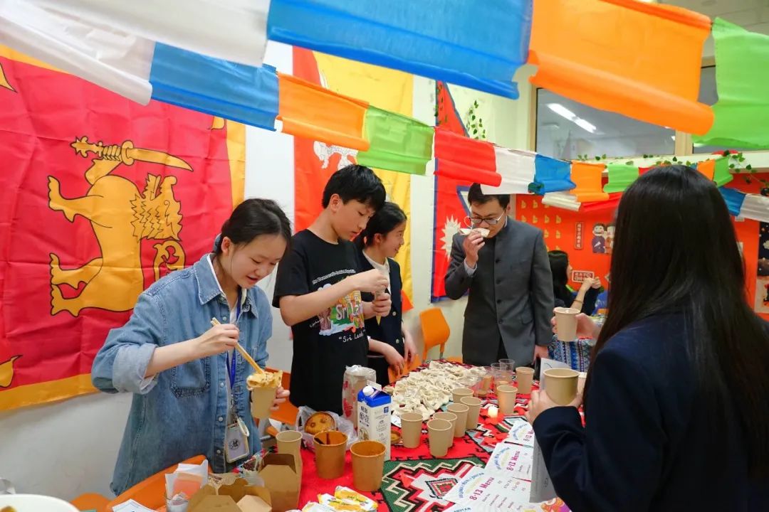 With these questions in mind: 'What is culture?' 'How should we properly understand and inherit culture?' 'Where do the differences between cultures manifest?' students excitedly strolled through the classrooms as the world fair finally began, hoping to experience diverse cultures. Active student volunteers formed a volunteer organization on-site to help maintain order, distribute refreshments, and organize activities. Through various preparations and efforts, each classroom became an exhibition area showcasing the distinctive cultural features of different countries, including clothing, cuisine, music, festivals, customs, and more. You can taste the cuisine of various countries, listen to different styles of music, and even perform characteristic dances with the music.
