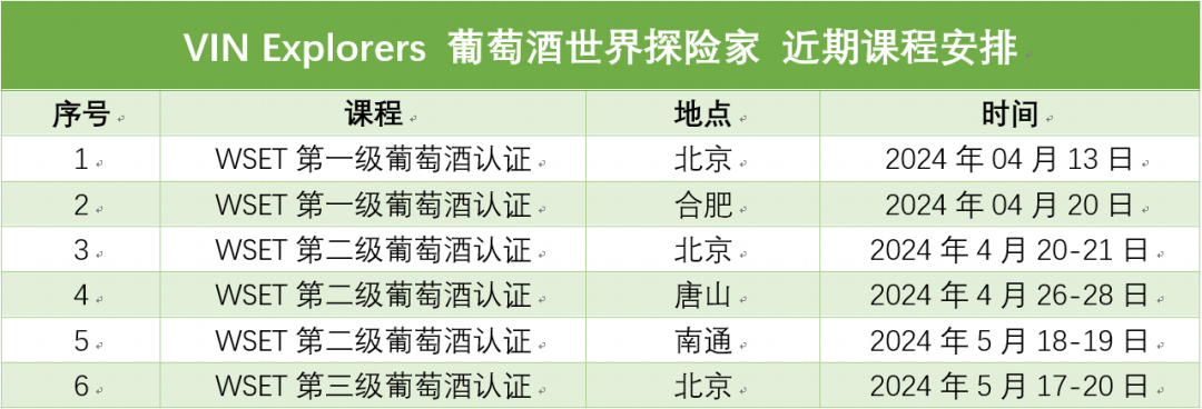 重磅消息!WSET葡萄酒认证即将开课,不同时间·不同地点·不同等级,总有适合你的那一期。