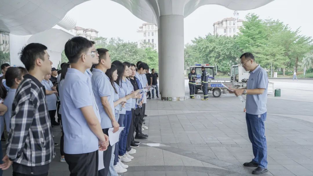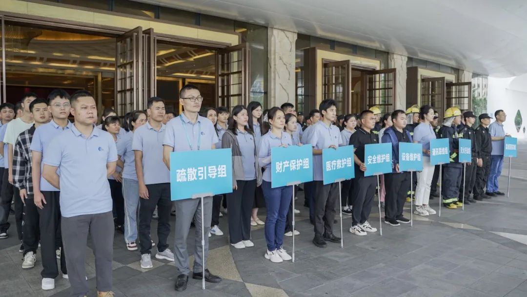 本次演练由安保部经理李学博对演练过程进行讲解,对参与演练的员工进行分组安排,明确各小组的职责分工,强调了消防演练的重要性及注意事项。