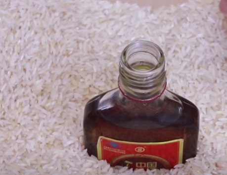 白酒的第四个妙用,直接将白酒插进大米当中,瓶口一定要高于大米,这样防止大米掉进白酒里面。接下来,我们直接将盖子给它密封紧,这样白酒里面的气体就会不断的释放出来,里面有酒精消毒又杀菌,可以防止大米里面滋生细菌,可以防止大米生虫,非常的实用。最后一定要盖上盖子,这样效果更加的好。