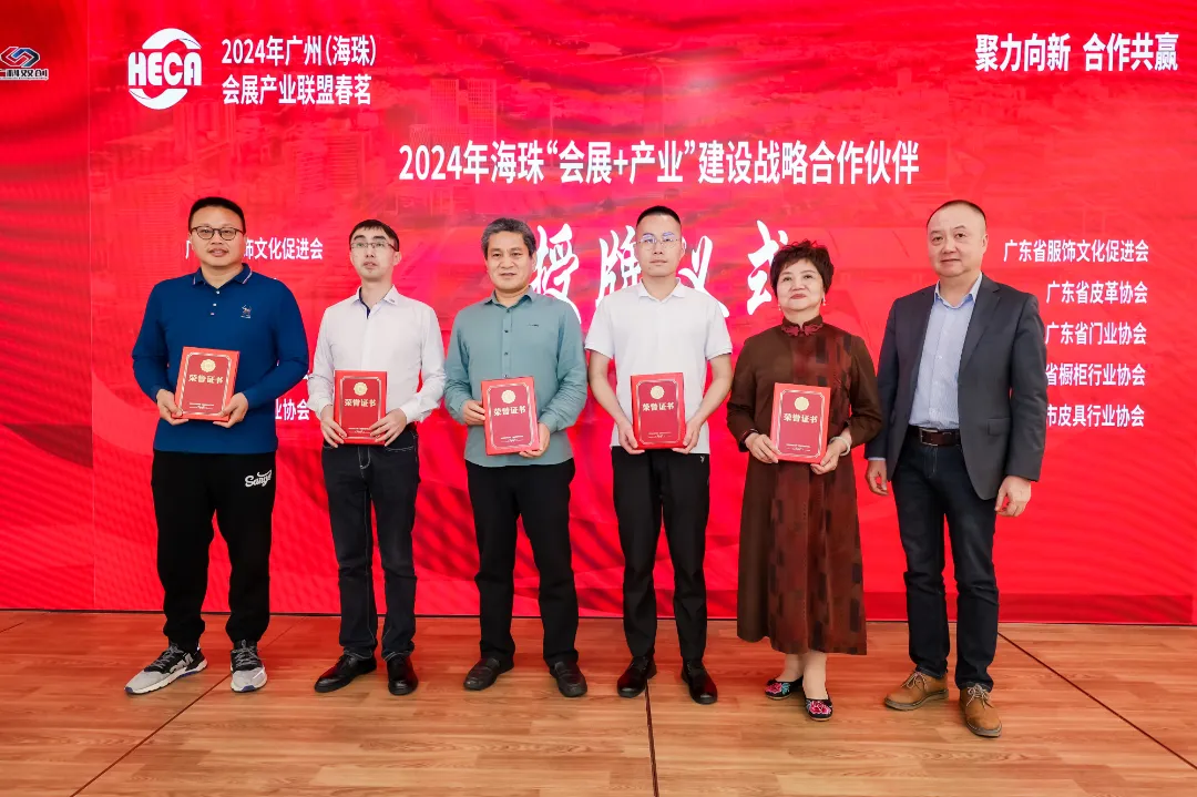 3月26日,2024年广州(海珠)会展产业联盟主办的“会展业如何以‘智’提‘质’,发展新质生产力”为主题的会展+产业共建论坛,在广州海珠区琶洲中洲中心成功举办。本次活动致力于以“聚力向新 合作共赢”为主旨,旨在深入贯彻广东省高质量发展大会精神,奋力推动海珠会展业高质量发展。主管部门领导、专家学者、知名会展企业、联盟单位、特约商协会、海珠会展业代表100余人参会。通过活动进一步把握行业新趋势、新动态,加强行业交流合作,推动政企互动,为2024年海珠会展开好局、起好步增添前进的动力。广东省皮革协会秘书长陈万日应邀出席,代表粤皮协与广州(海珠)会展产业联盟达成会展共建合作并签约。