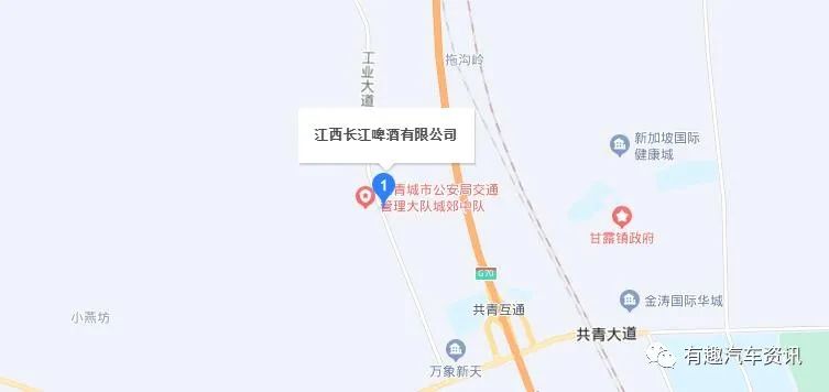 江西长江啤酒有限公司名下土地及厂房位于九江市代管县级市共青城市共青城工业新区工业大道与火炬四路交叉路口东南角。