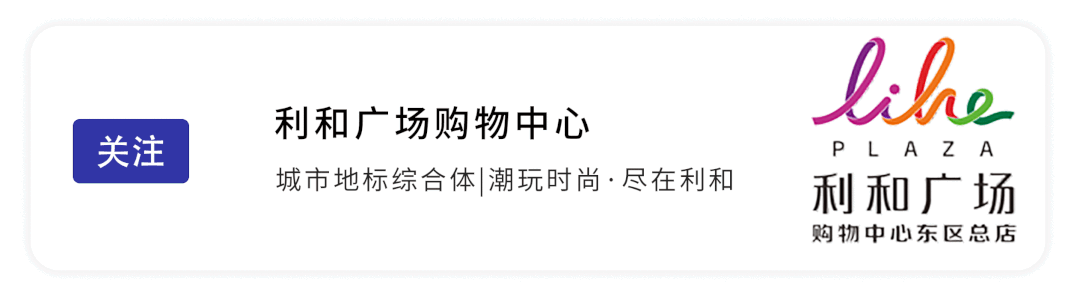 免责申明:本宣传资料相关内容不排除因未能控制的原因而发生变化,本宣传仅作为广告发布,以便客户了解信息参考使用,不构成利和广场购物中心的要约邀请、要约或承诺,利和广场购物中心将根据实际情况进行修改。本宣传资料仅供一般资讯用途,不存在任何专业意见,接收者如有任何疑问,应咨询相关专业人士的意见,以相关专业意见及实际情况为准。微信部分图片及文字,来源于其他公众平台与互联网网页,其目的是为了将更好的内容分享给更多人,版权依旧归原作者所有。如若有涉及侵权请予以告知,我们会尽快在24小时内删除相关内容,非常感谢。