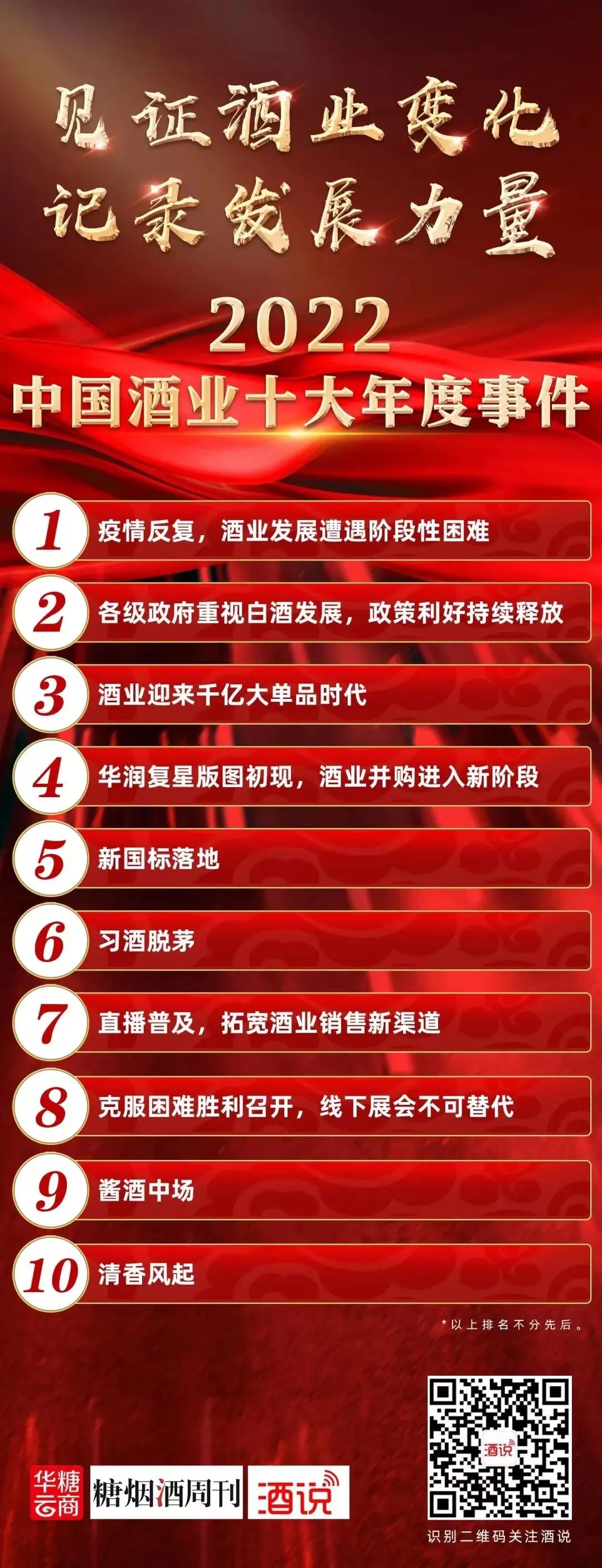 立足2022新起点,为穿越迷雾洞察酒业未来发展大势,酒说从2023年1月20日起,将陆续发布“2022中国酒业年度事件”系列文章,敬请大家持续关注!