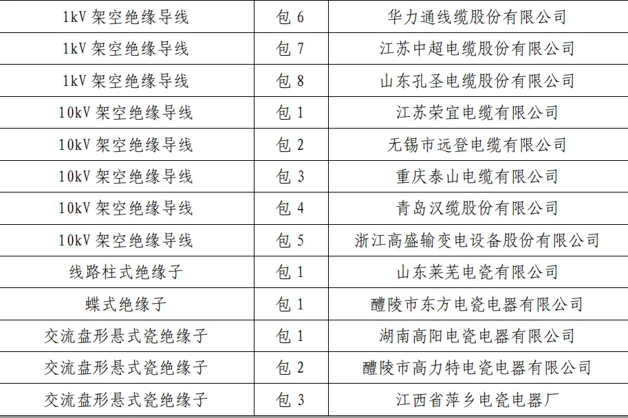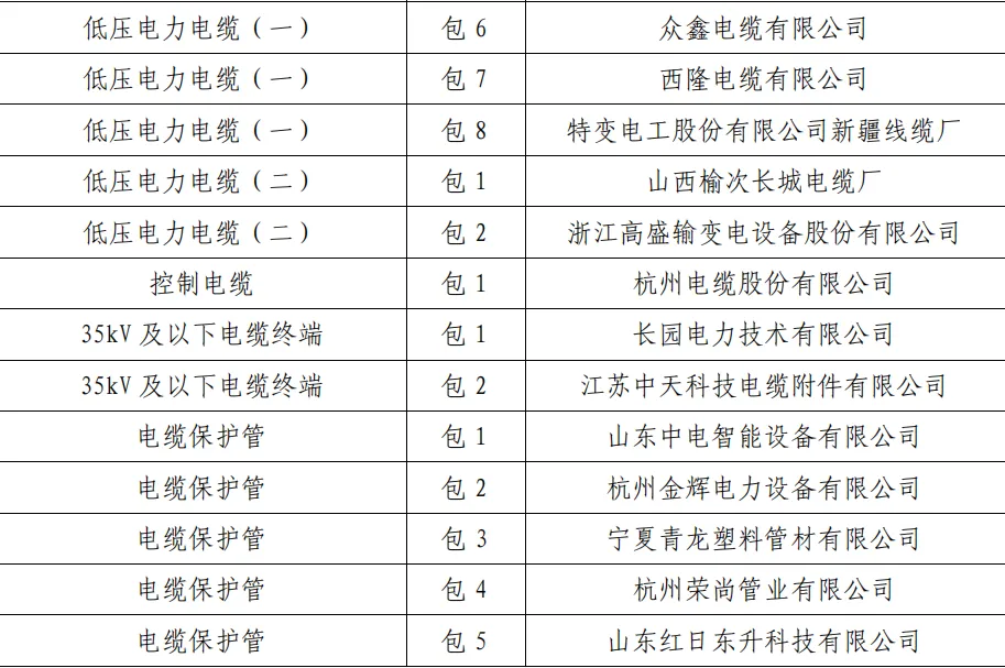 中标公告 | 国网宁夏电力有限公司2024年第一次配网物资协议库存公开招标采购中标人名单