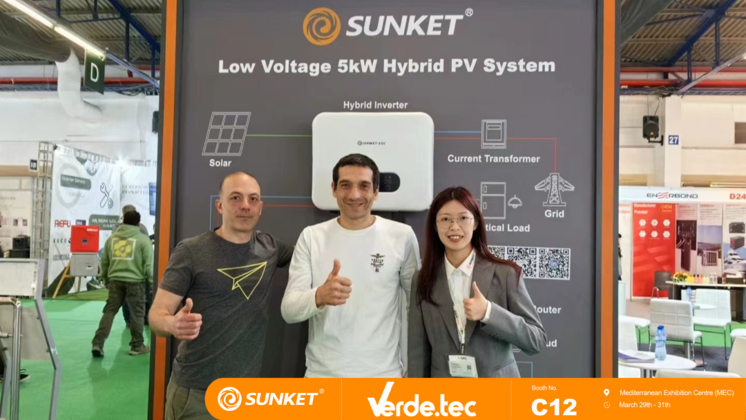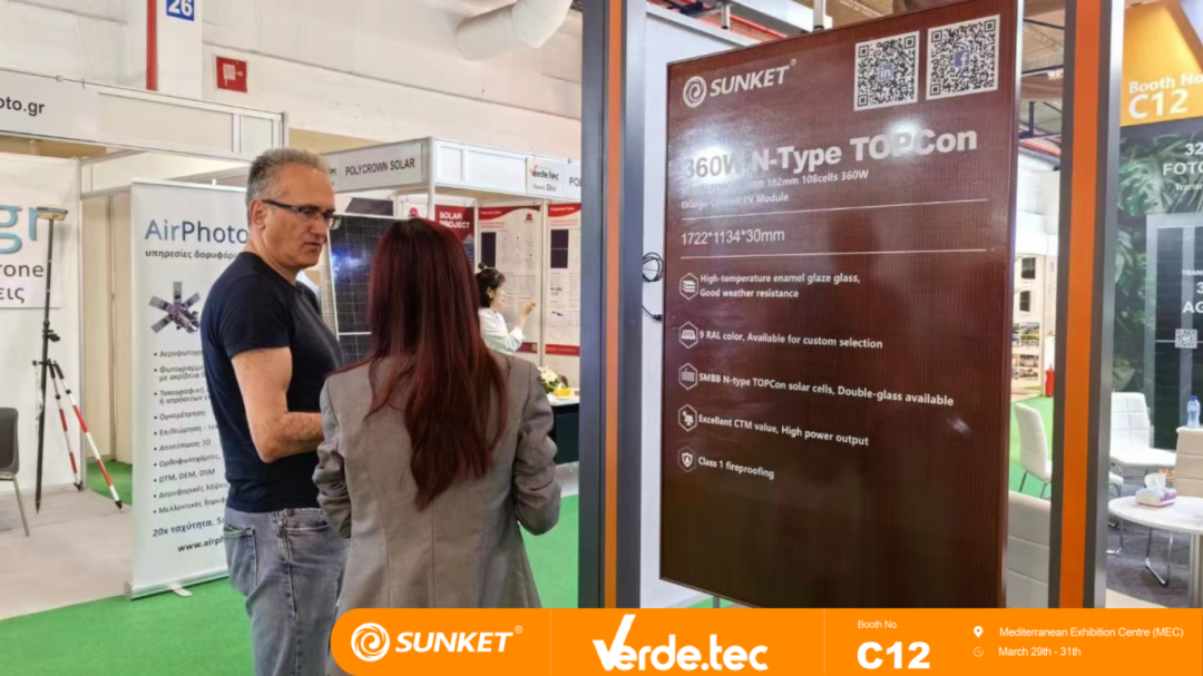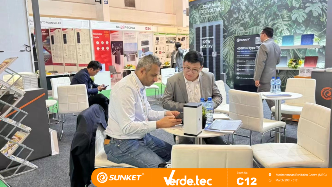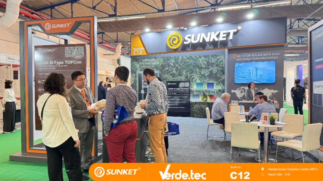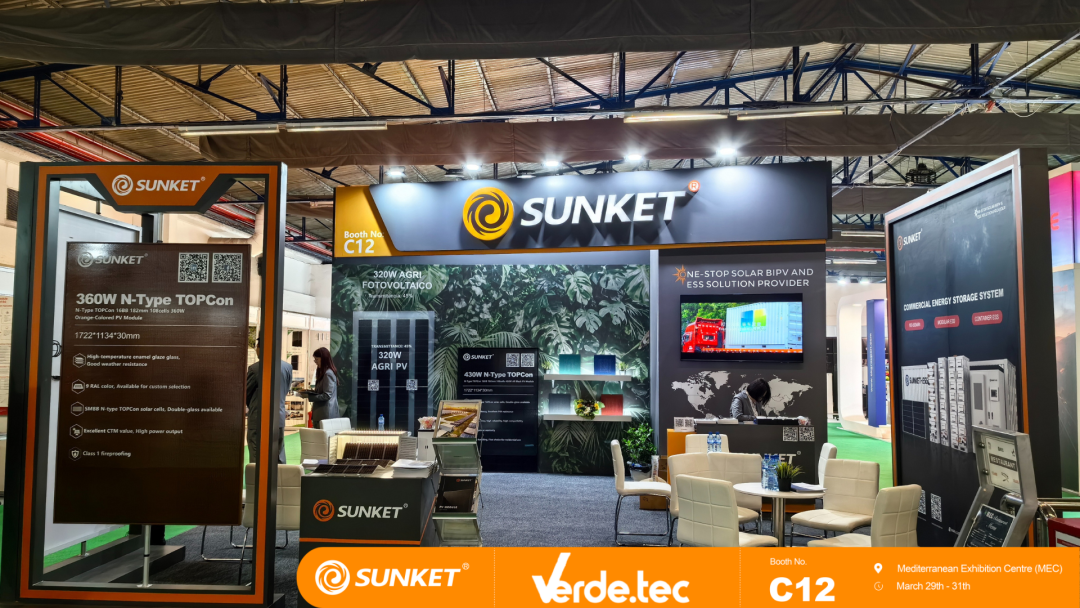 From March 29th to 31st, The much-anticipated Verde.tec 2024 officially opens at the Mediterranean Exhibition Center (MEC). Sunket showed up at booth C12 with new AGRI PV modules, heavyweight N-type series PV modules, a full range of energy storage products, integrated photovoltaic and storage folding power generation cabins and leading solutions With its efficient and robust product quality, it won on-site customers highly recognized, and also demonstrated leading photovoltaic technology and brand strength to the European market.