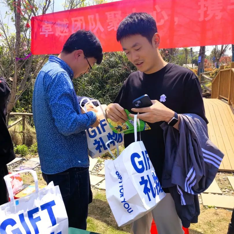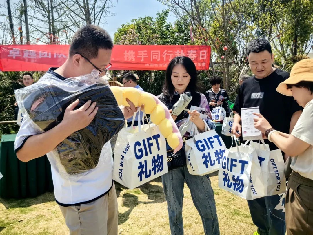 参观结束后,员工们来到露营地抽取初春礼物盲盒,大家互换喜悦,为春日增添了明媚生机,随后大家落座湖边,在春日的暖阳下,欢声笑语,共赏春日。