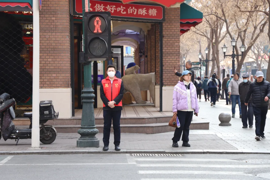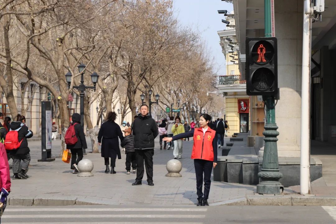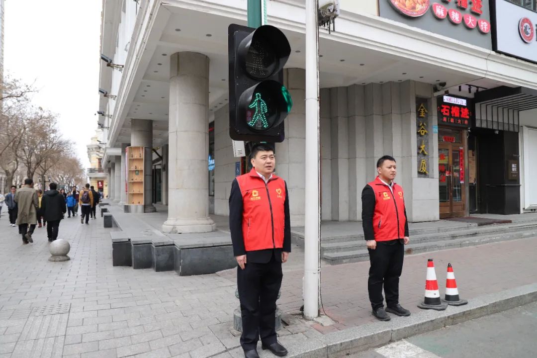 初春的哈尔滨,依然有些寒风料峭。金谷大厦党员、团员志愿者们身穿红色马甲,每两人为一组,在中央大街西二道街与上游街交口进行交通协管志愿服务,根据交通信号灯,提示过往行人遵守交通法规,文明出行。对无视通行信号的行人进行劝回,提醒注意交通安全;对询问地点、方向的行人给予耐心解答、温馨相助。志愿者们的文明劝导和礼貌服务得到了群众理解和配合,用实际行动弘扬了志愿服务理念,助力营造安全、畅通、文明的道路交通环境。大家纷纷表示,在以后的出行、驾乘车过程中,一定自觉遵守交通法规,努力做一名交通安全的践行者、宣传者和监督者。