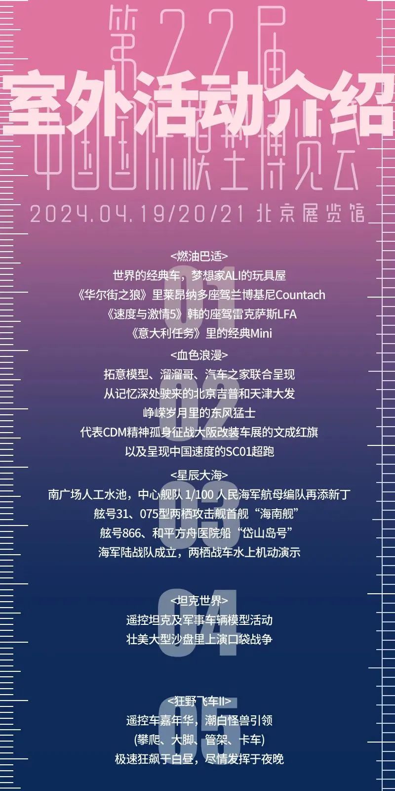 2024第二十二届中国国际模型博览会将于4月19日-21日,在北京展览馆举办!自2001年创办至2023年已经举行了21届,中国国际模型与广大模型企业携手共沐风雨,彼此在时代和机遇中相互成就。从摸索学习到自主原创,从生产代工到树立品牌,从寥寥厂牌到如今百花齐放,风气精神之盛前所未有。HEC中国模型展已发展成为亚洲最大的综合模型博览会之一。在继续服务各类遥控模型、合金车模、塑胶拼装企业的同时,展览会将更加着力拓展影视道具、IP授权、微缩场景、铁道模型、科幻机甲、国风国漫等领域的商业应用。模型种类包罗万象,表现形式繁多。1.门票仅限单次入场有效, 离场作废。门票发票申请时间为:4月22日至5月30日。观众可于展览结束后登录购票系统申请开具正式发票。