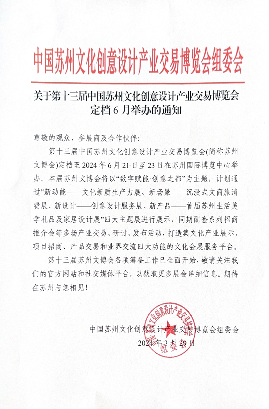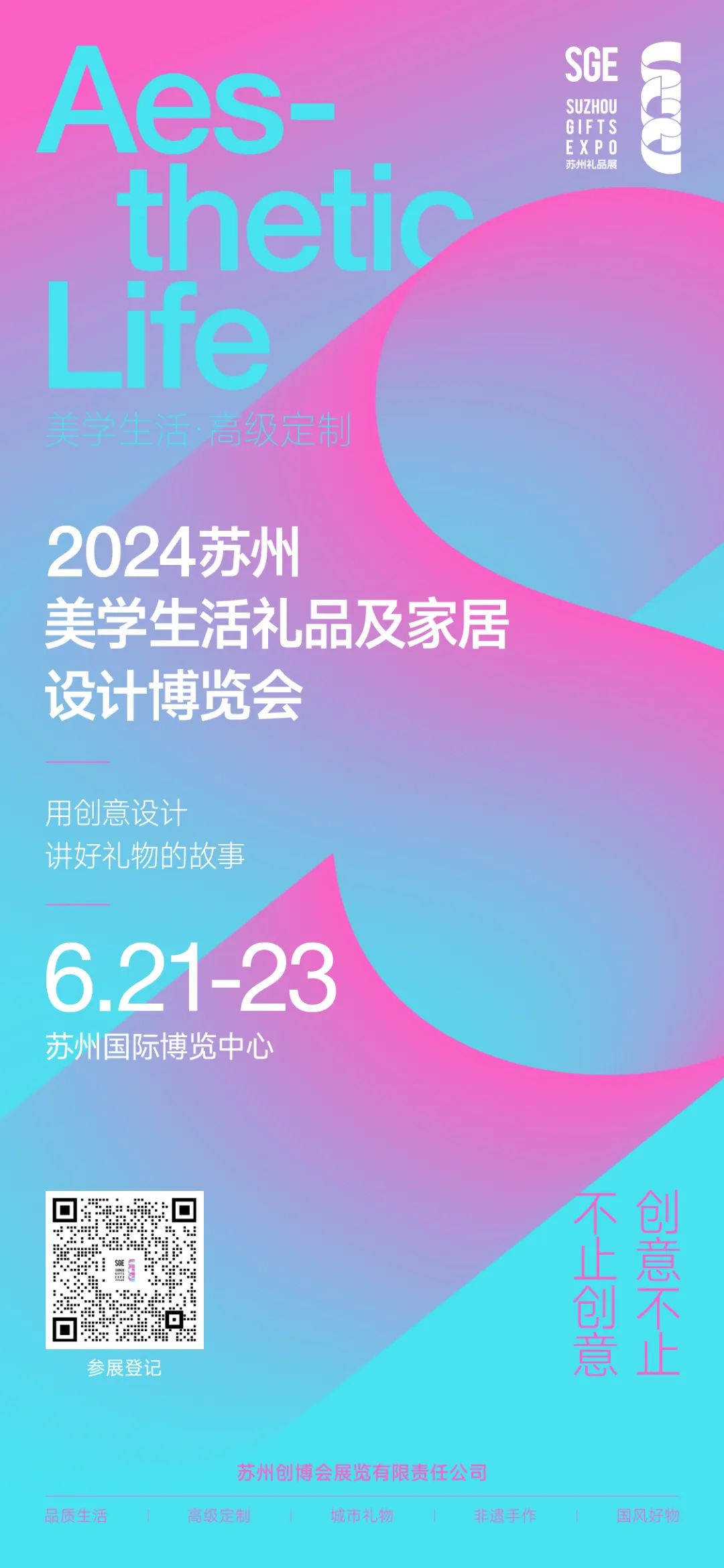 2024 苏州礼品展SGE将与第十三届中国苏州文化创意设计产业交易博览会同期、同地举办,更多创意好物、创意趋势、市场开发渠道,将为您共同呈现。