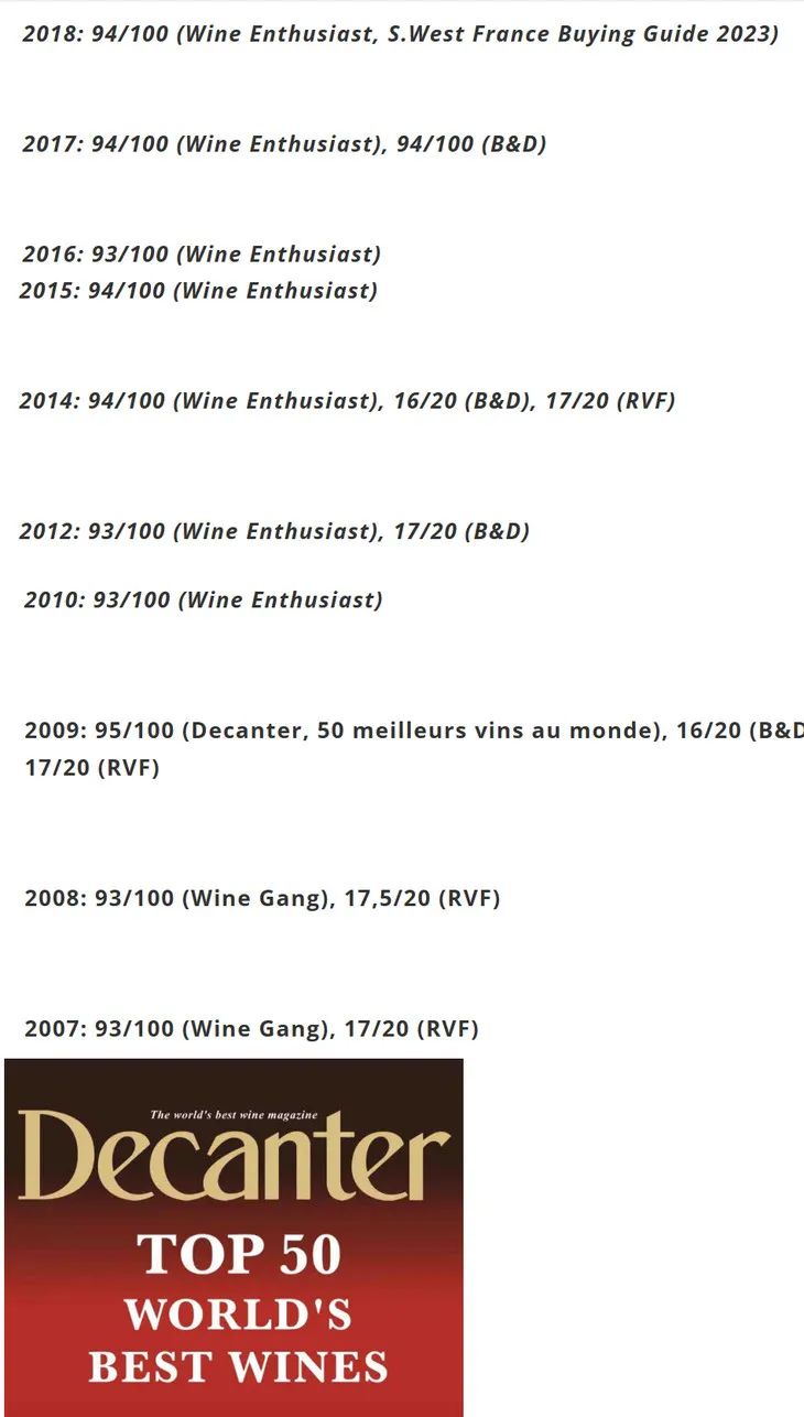 香贝庄:获 190 多个奖牌,被 B&D 杂志评为“年度酒庄”,被 Decanter 评为“全球 50 大葡萄酒之一”;