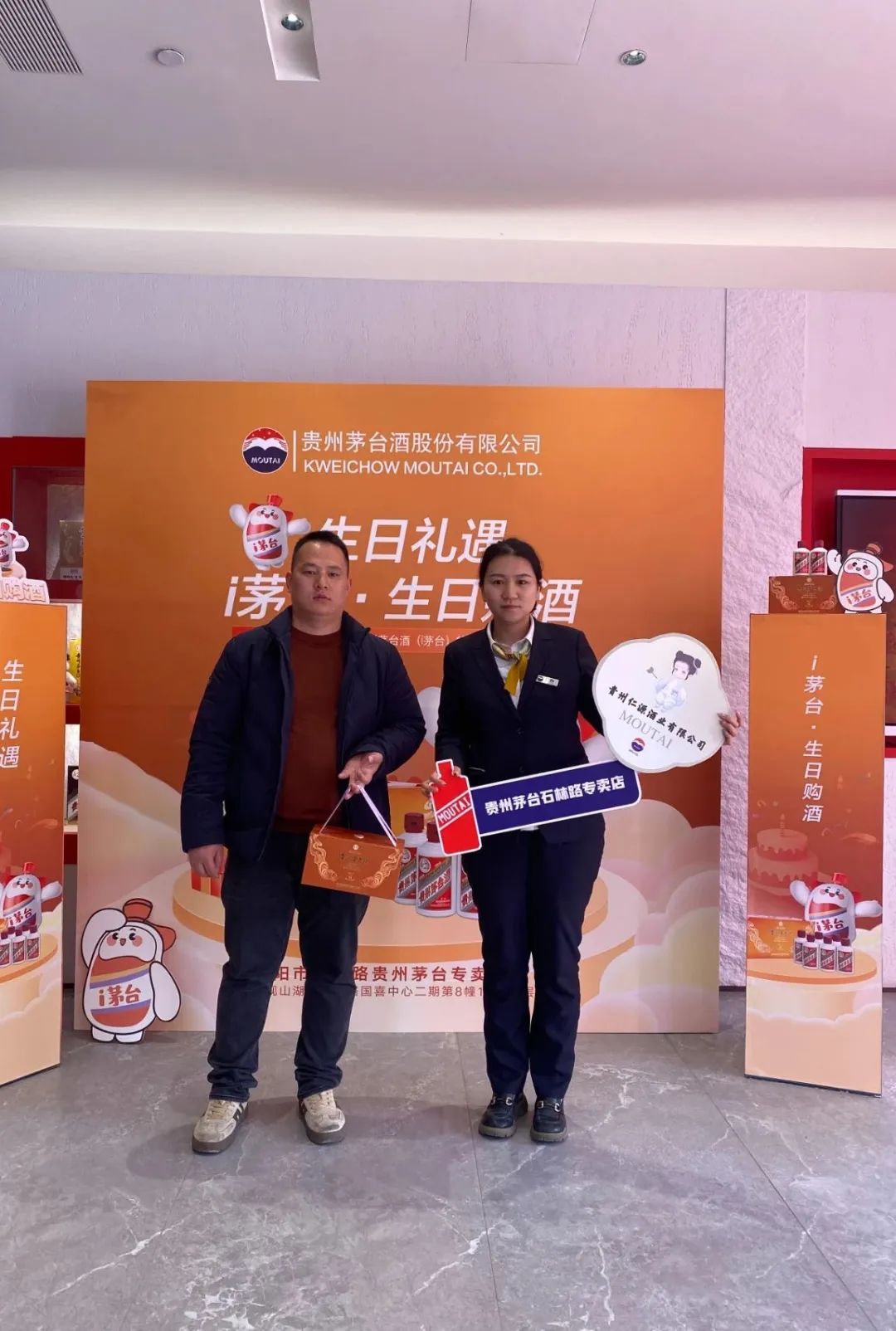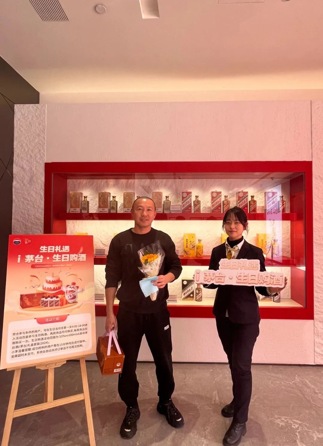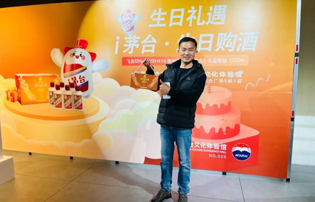 次日,以此次活动为主题的宣传背景物料已经在店内布置完毕,让前来专卖店参加生日购酒的茅粉朋友们感受到特别的礼遇。专卖店员工还为每一位取酒的客户送上了一份真挚的生日祝福,为此次活动推出的小茅礼盒装产品赋予了浓浓的温情。