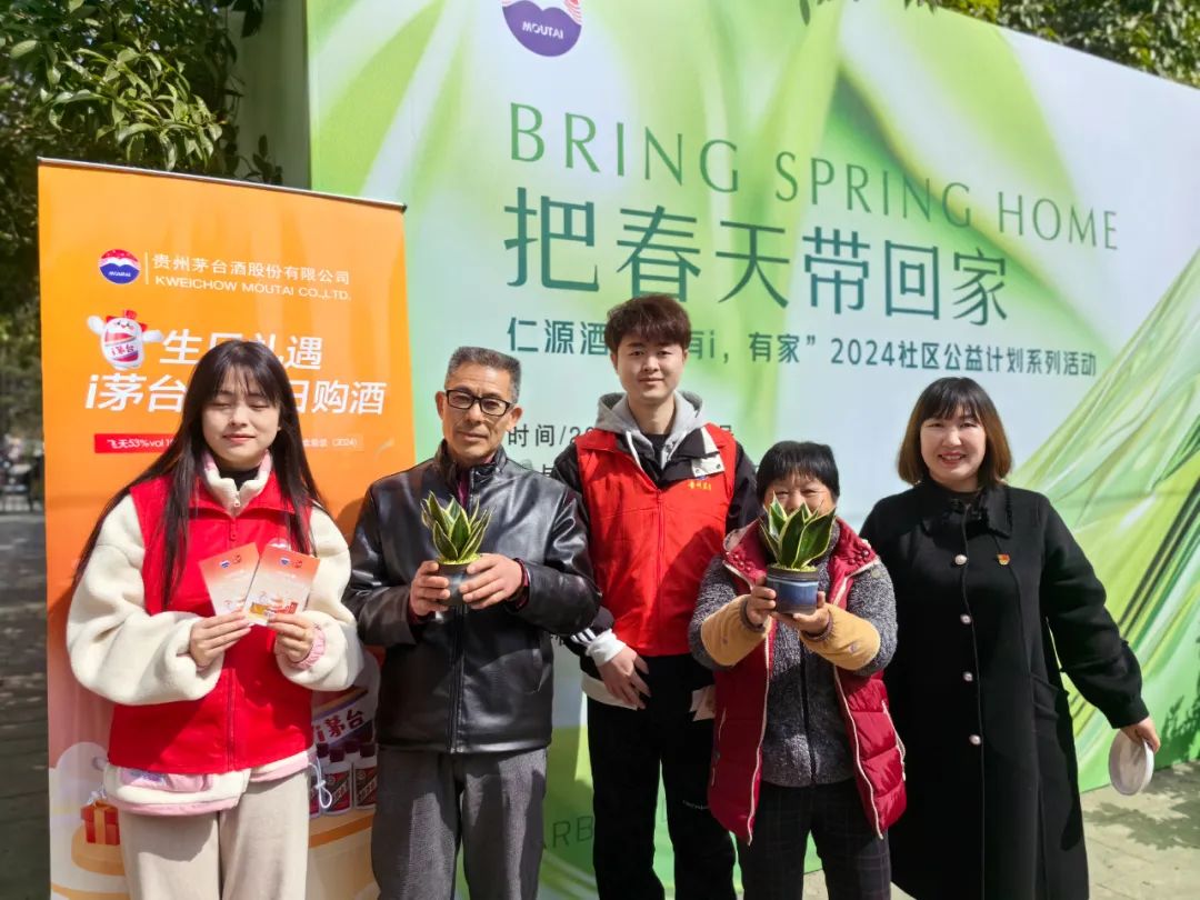 除了在石林路茅台专卖店和毕节路茅台文化体验馆内,针对前来提货的茅粉客户们积极介绍i茅台·生日购酒活动,仁源酒业还在近期组织员工主动“出击”,深入社区开展相关宣传推广活动。在石林路茅台专卖店对面的金阳街道奥林社区,一场名为“把春天带回家”的环保主题公益活动,吸引了上百位社区居民。