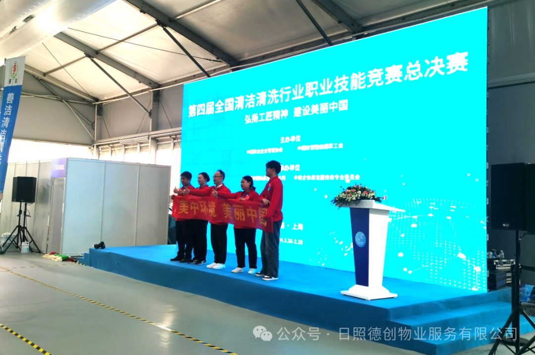 比赛中王总代表公司团队展示了玻璃清洁技能,得到评委满分好评!