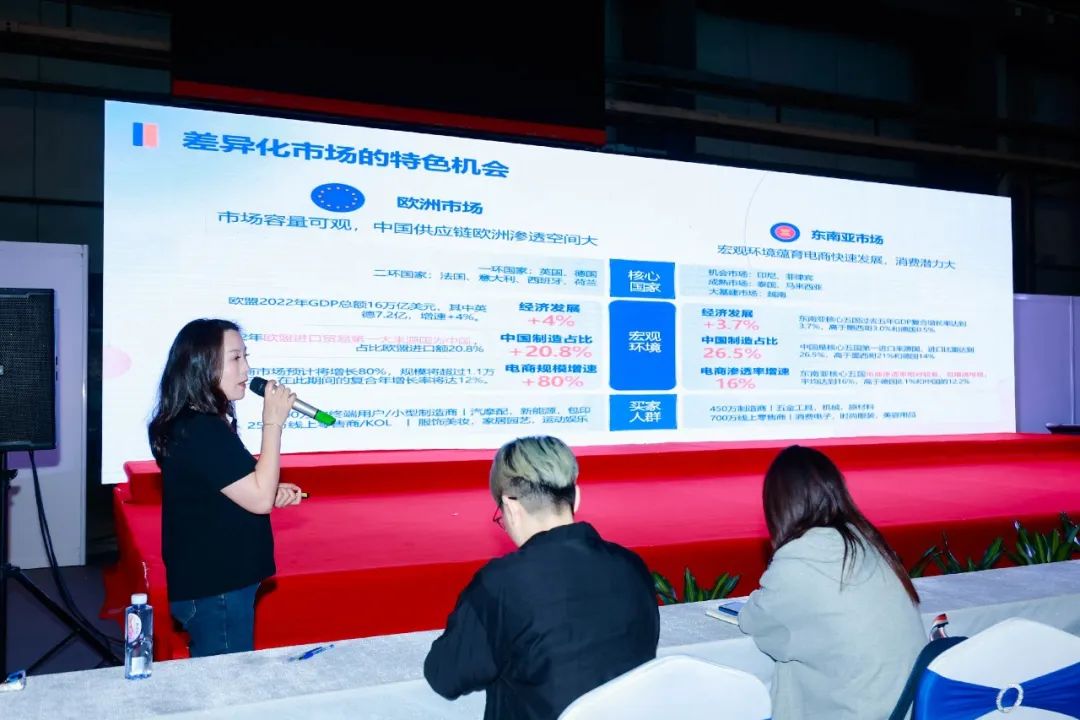 本次博览会活动之一的纺织服装行业跨境电商论坛活动由阿里巴巴国际站客户经理、拥有12年跨境电商行业从业经验的李敏经理及大健云仓资深招商经理Sunny现场讲解。从“新”外贸模式讲解、 服装出口数据解读到创新的“供应链前置”模式,强化纺织服装上下游合作赋能,一件代发/自提货、保证金锁库存、云送仓等多种交易方式满足各类需求,7W+ SKU海外仓现货库存,覆盖欧美+日本等主流国家市场等主题内容的演讲。