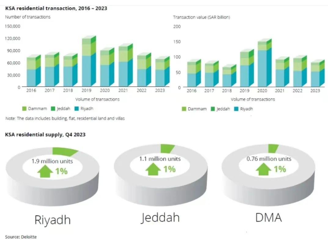 RedSeer Strategy Consultants的市场研究报道:沙特房地产行业正在快速增长,预计未来四年的市场规模将上涨62倍以上,达到1000亿美元左右。从房地产开发到买卖交易,从专业咨询到物业管理,一系列完整的五福链条已经在市场上形成。首都利雅得将成为该国房地产市场的中心,预计到2027年将会占据市场份额的50%。沙特的住宅房地产预计每年将增长7%-8%,而商业地产将每年增长12%。