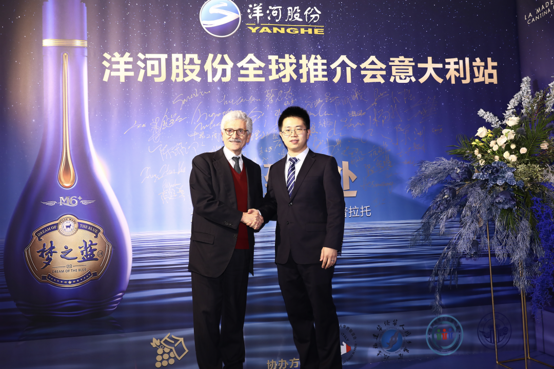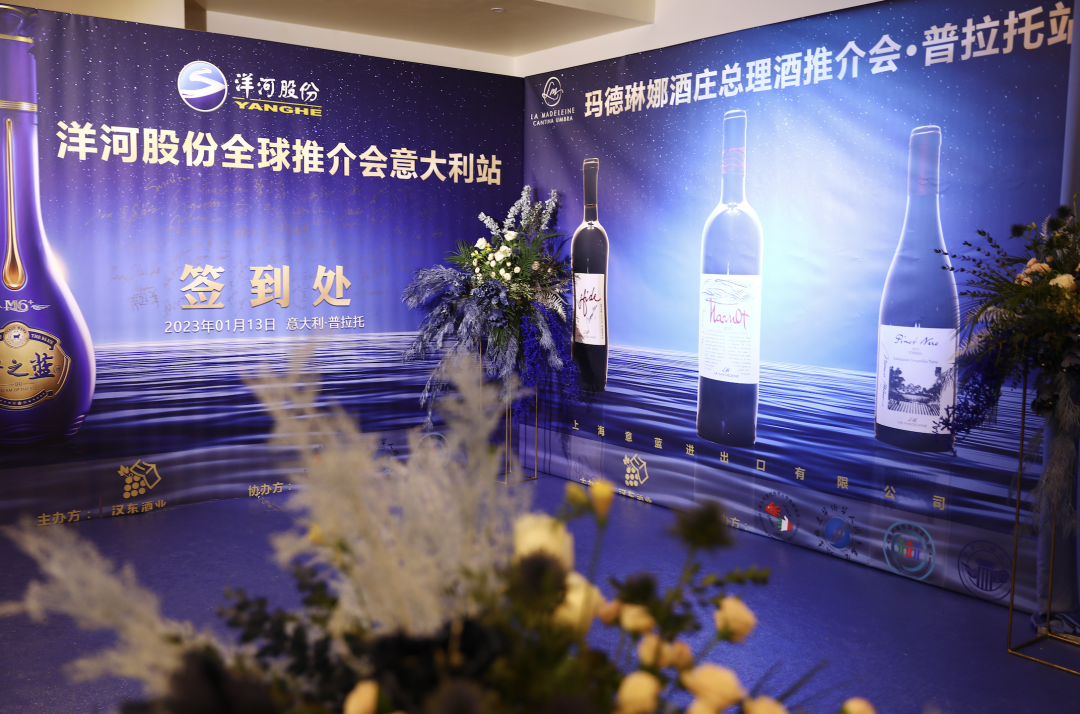 2023年1月13日晚,中国白酒巨头洋河股份全球推介会与意大利玛德琳酒庄总理酒推介会,一齐在意大利普拉托市举行,一场中国白酒与意大利红酒的交流盛会由此展开。