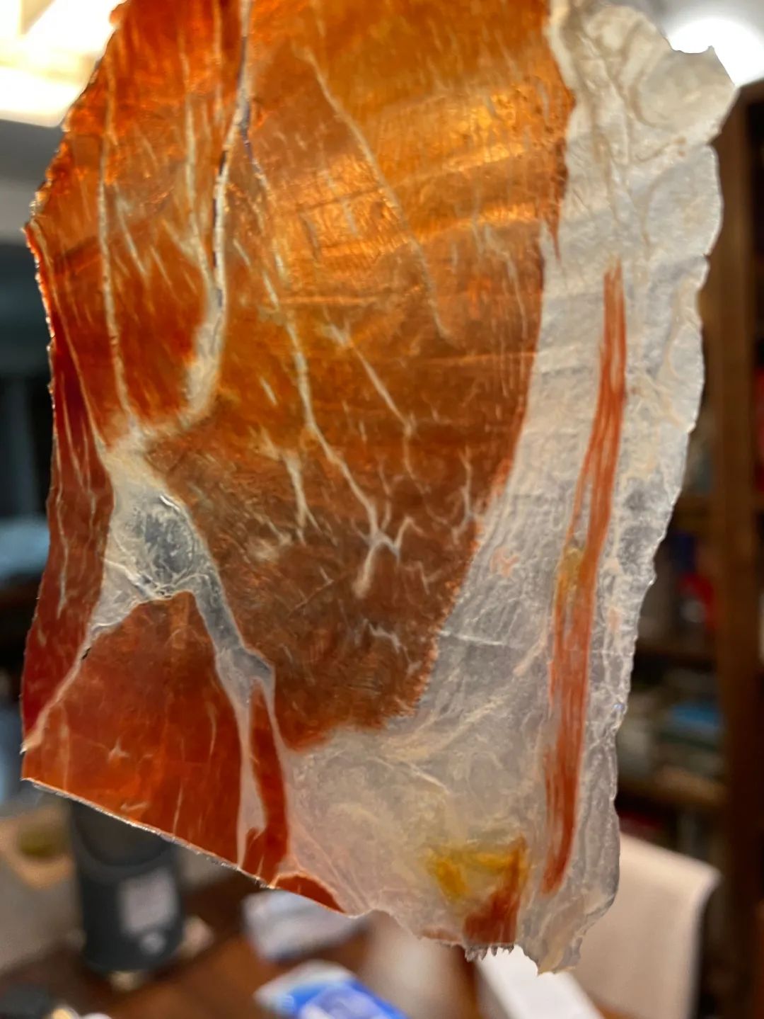 以前吃西班牙火腿,我一般用威士忌搭配佐餐,这次换成冰镇过的尕亚半甜白葡萄酒,一开始担心它比较凉,火腿里的油脂可能不好被溶化,实际上一喝起来觉得很好,一入口就可以把火腿中的油脂给化解掉了,而且西班牙火腿的甜和咸适度,跟尕亚这款雷司令半甜白葡萄酒搭配得恰到好处。不知道马克·米奥多尼克所说的里奥哈白葡萄酒是个什么感觉,但我觉得用这款清新的尕亚雷司令半甜葡萄酒搭配西班牙火腿已经是绝配了。