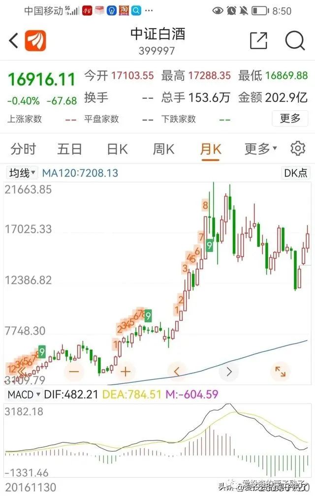 根据周期推算,下一个朱格拉周期大约在2026年。白酒行业120月线正以平均每月100的速度向上走,所以简单推算,白酒行业最终低点将在120月线附近结束,大约是11500点。按照目前看,跌幅还有30%。